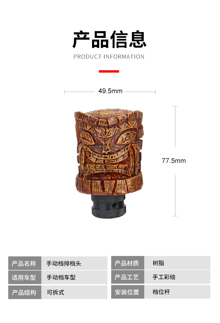 - Unique Human Face Portrait Design: Featuring an eye-catching human face portrait design, this shift handle adds a distinctive and personalized touch to your vehicle’s interior, making it stand out from the crowd. Available in red-brown and off-white colors.