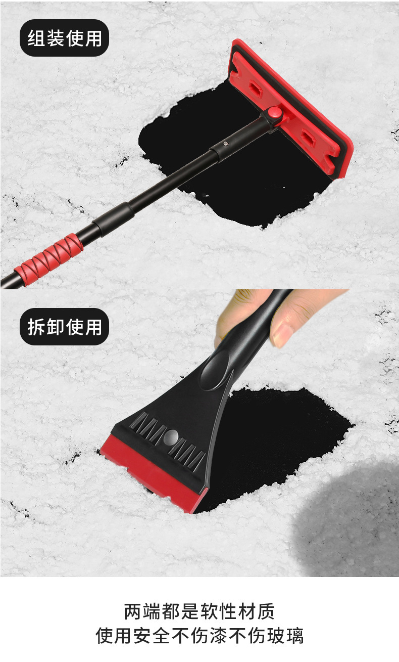 - Durable Material: Crafted from high-strength aluminum alloy for the telescopic rod,牛筋(tendon) material for the ice scraper, and soft EVA sponge for the snow brush, ensuring durability and paint protection.
