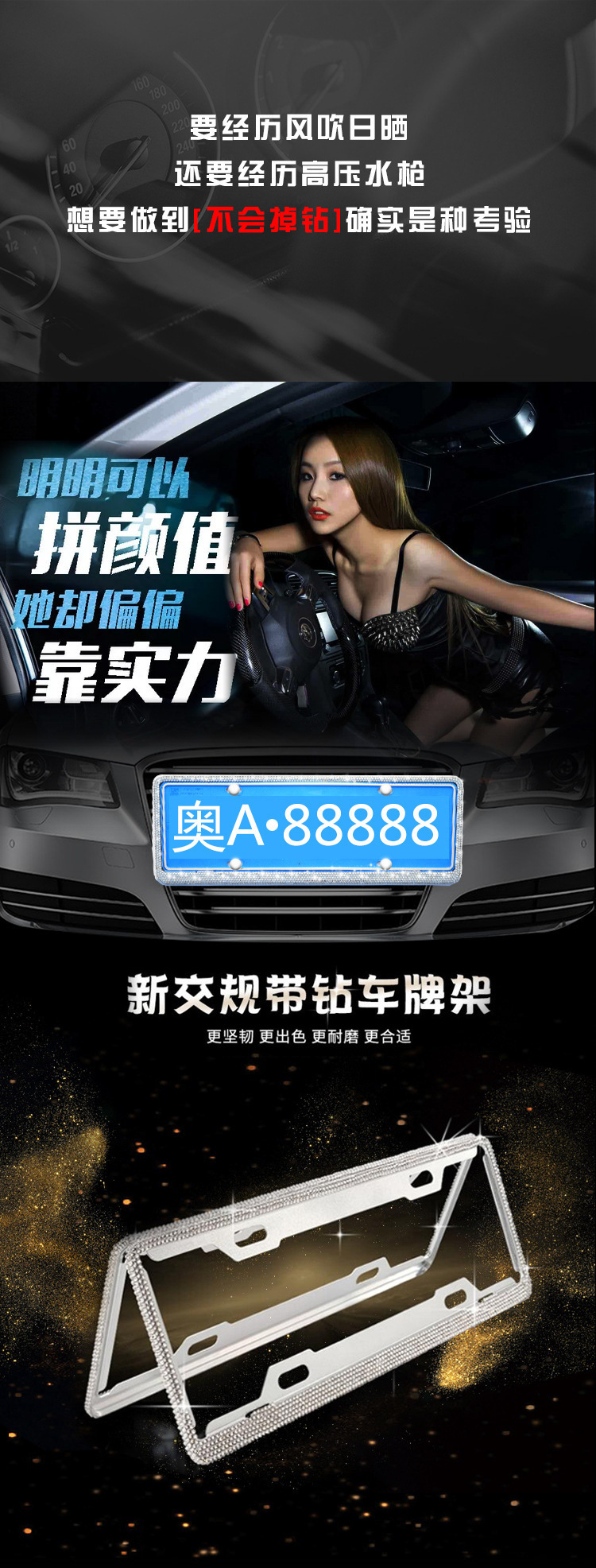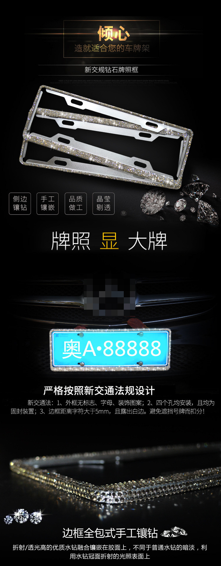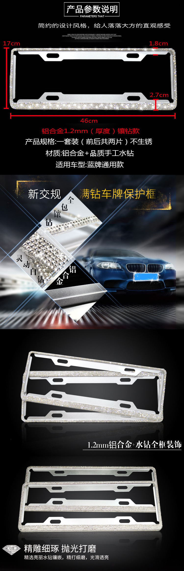 - Premium Material & Durability: Crafted from high-grade aluminum alloy, this license plate frame is built to resist rust and corrosion, ensuring long-lasting performance and a brilliant shine. The embedded crystal rhinestones are securely set for enhanced durability.