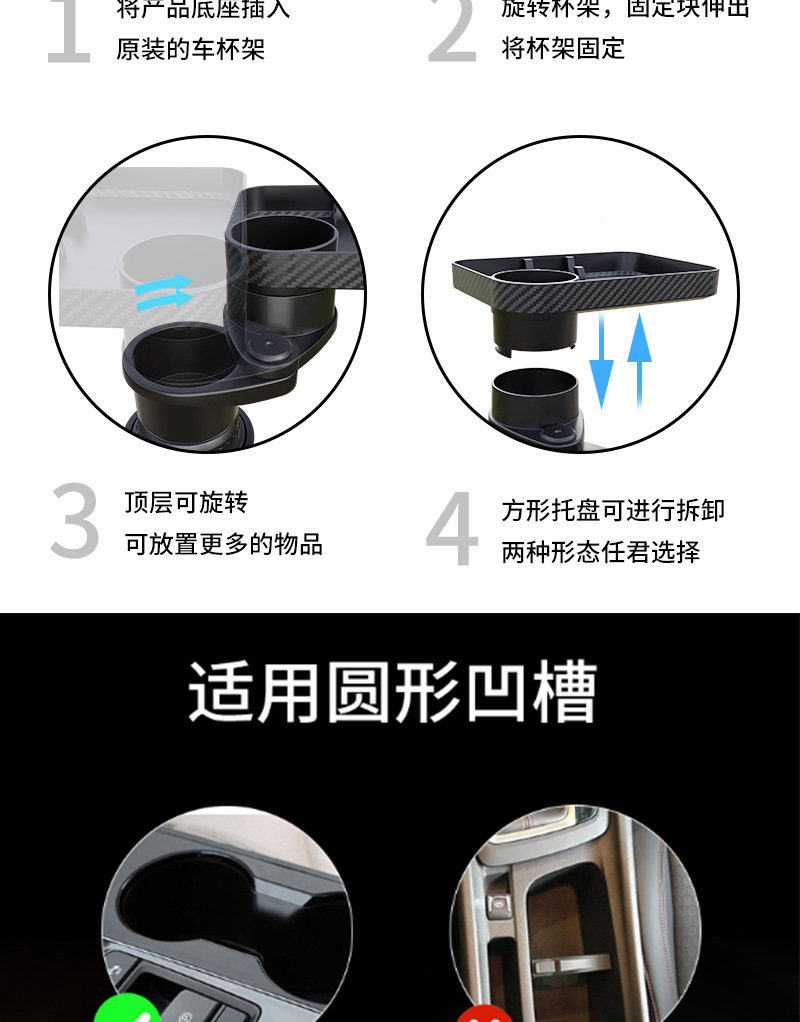 - Multi-functional & Rotatable: This innovative 2-in-1 design integrates a dual cup holder with a rotatable tray and a phone stand for convenient access and multi-angle viewing.
