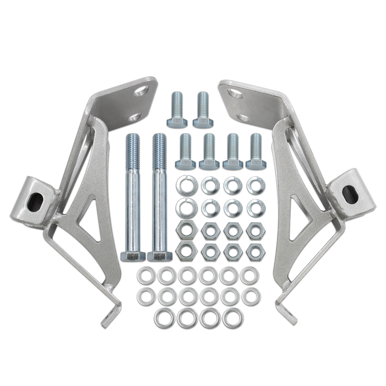 • Featuring a new design with approximately 1-1/4″ more clearance than old-style mounts, these brackets optimize engine placement and contribute to a cleaner, more organized engine bay aesthetically.