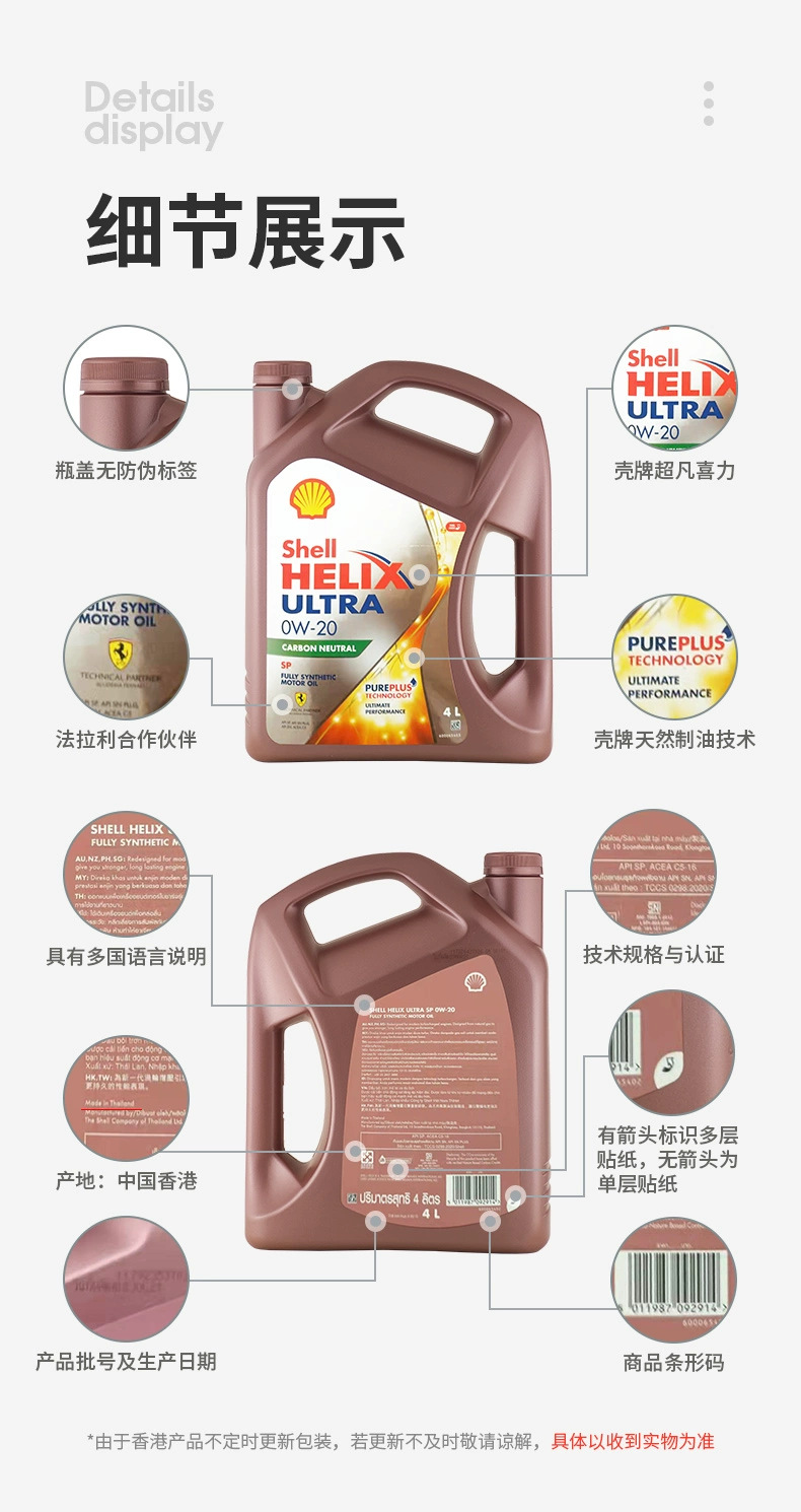 - Complete Package: Includes 1x 4L bottle of Shell Helix Ultra 0W-20 SP Fully Synthetic Motor Oil, exactly as pictured. Please verify fitment details before purchasing.