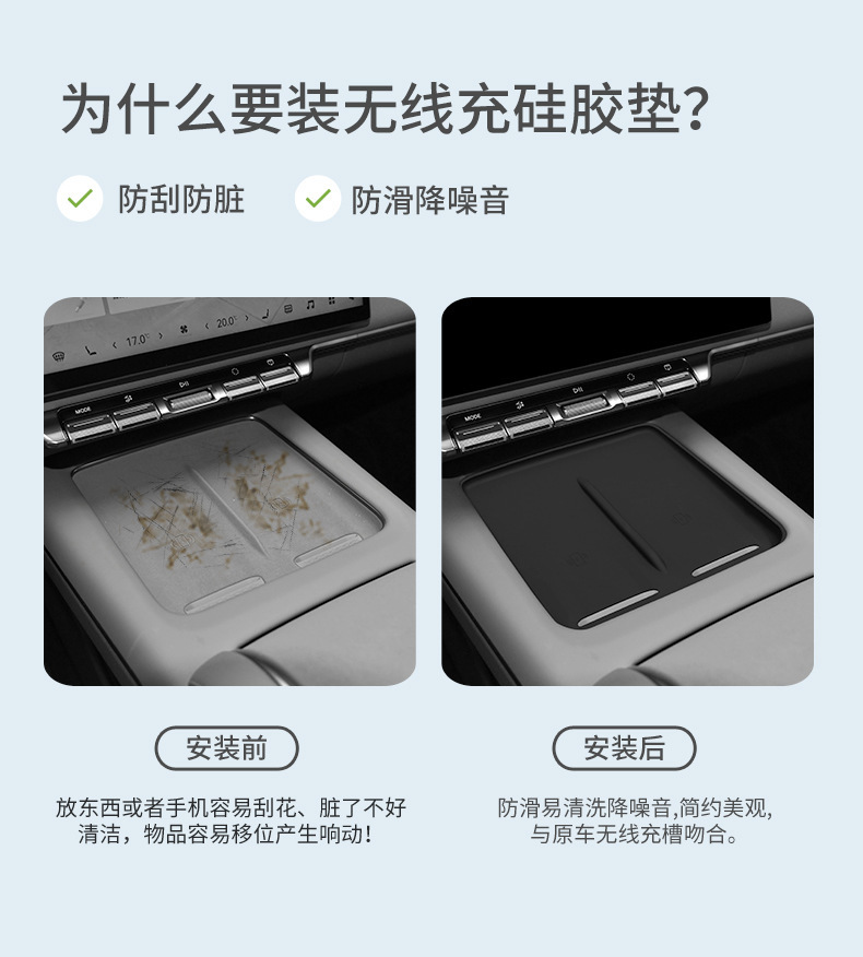 - Easy Installation: Simply place the mat directly into the central console wireless charging slot for an instant upgrade, no modifications required.
