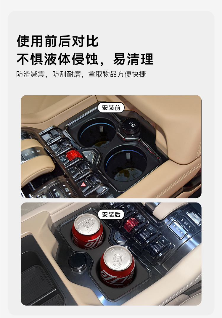 - Performance-Driven Design: Enhances driving comfort by securely holding beverages, preventing spills, and reducing noise and vibration from cups in the holder.