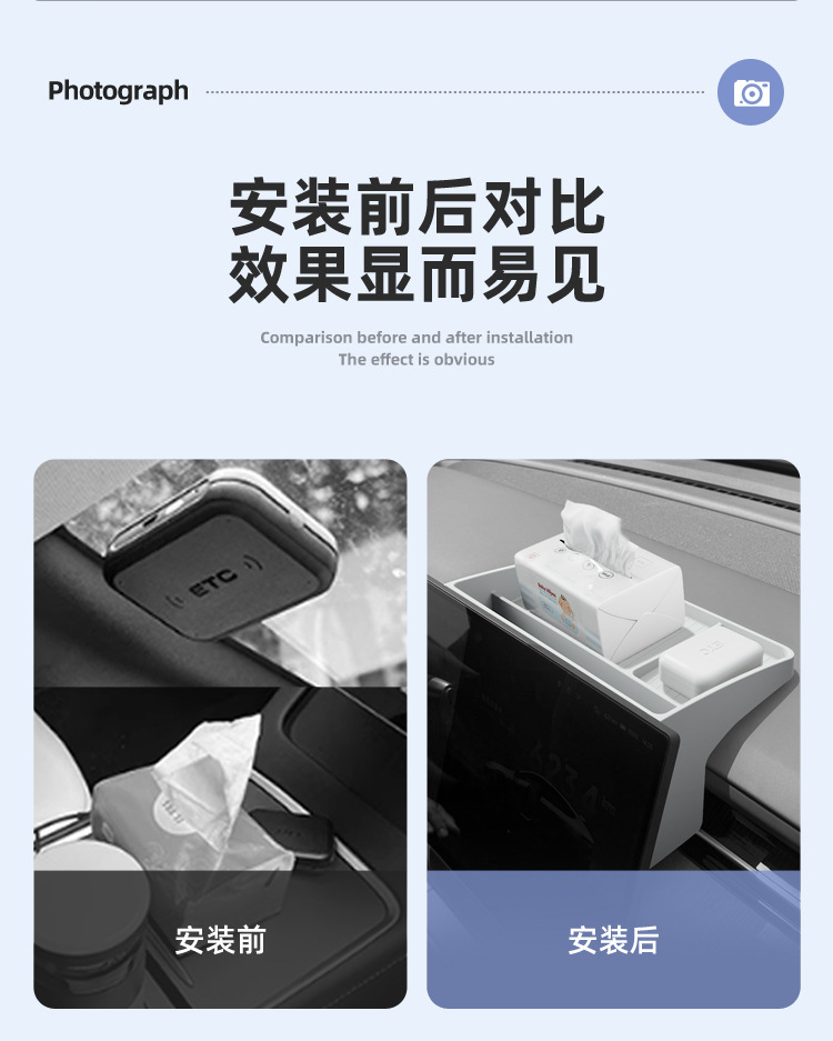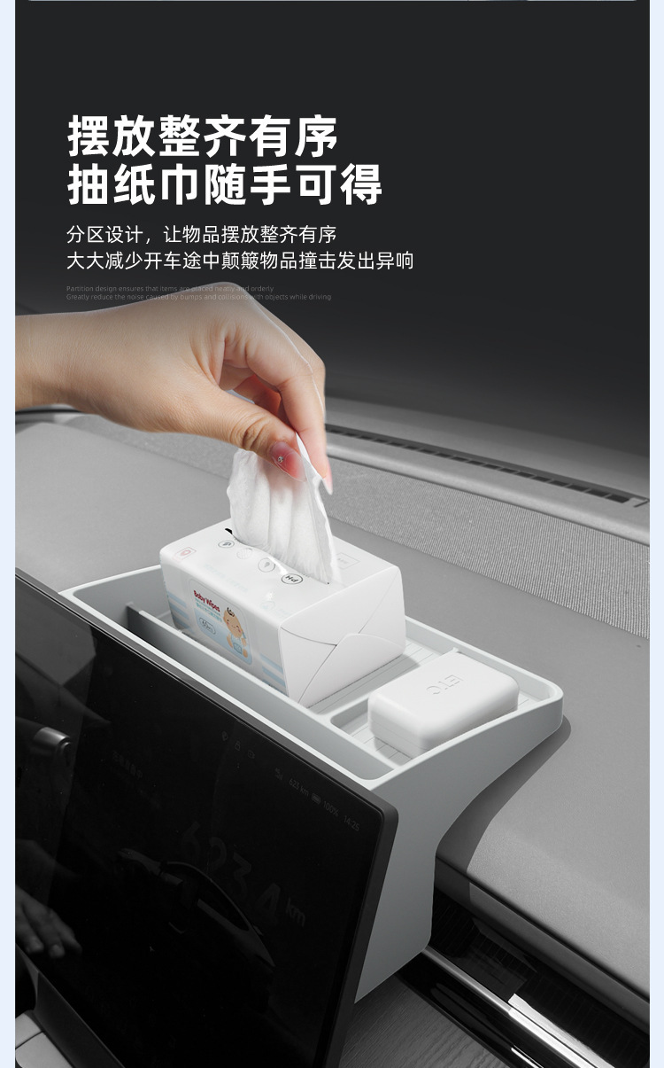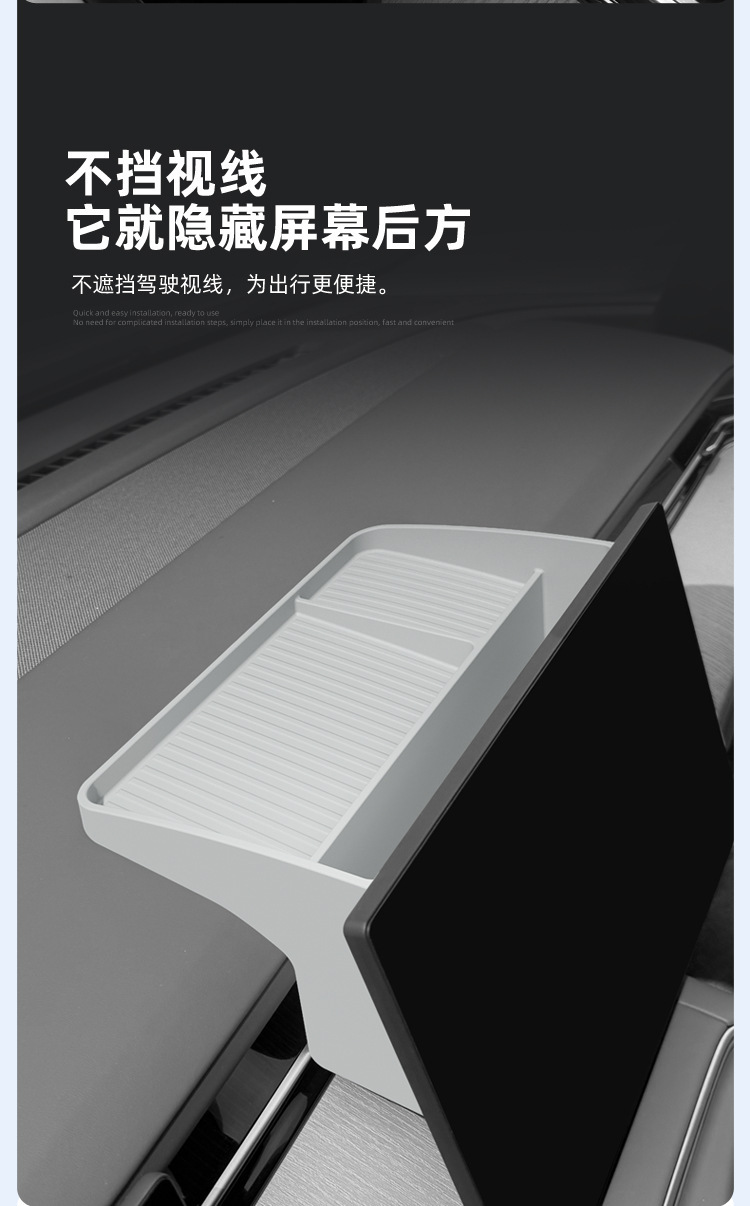 - Performance-Driven Design: This organizer box, as pictured, creates convenient storage space behind the center console screen, helping to keep your car tidy and organized.