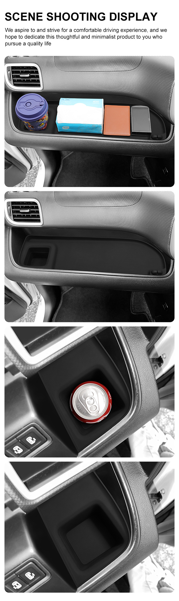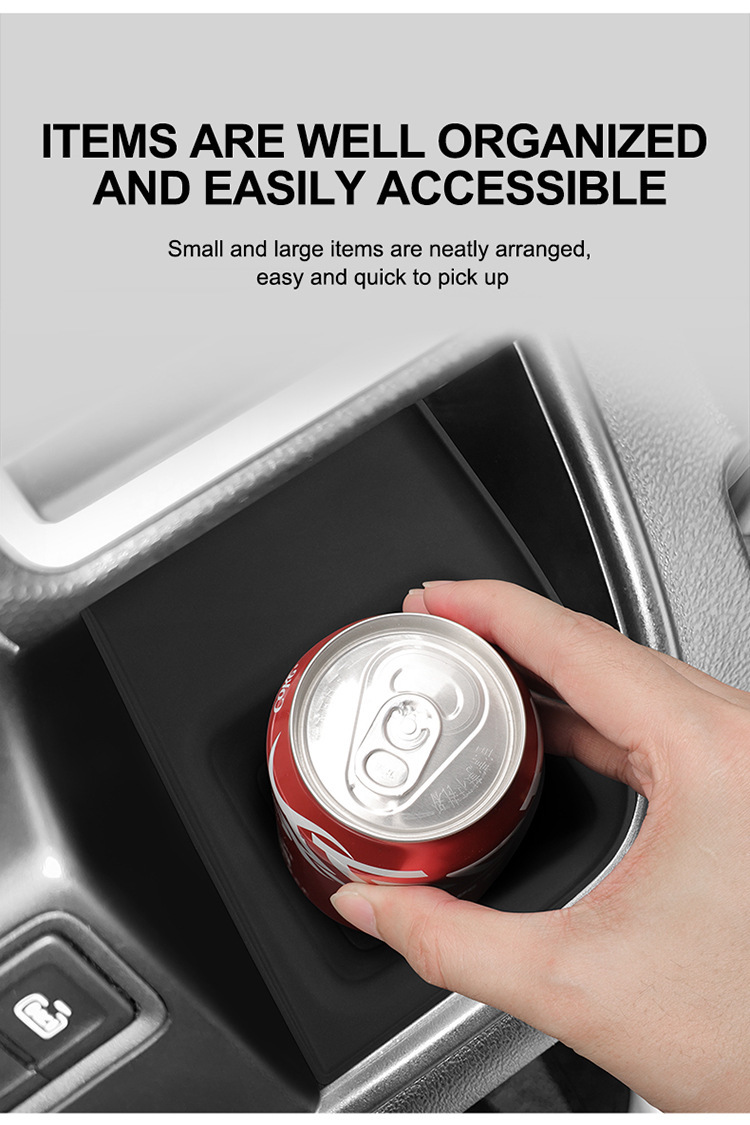 - Performance-Driven Design: Features an anti-slip texture and deep compartments to securely hold items like cups and small accessories, preventing rattling and sliding.