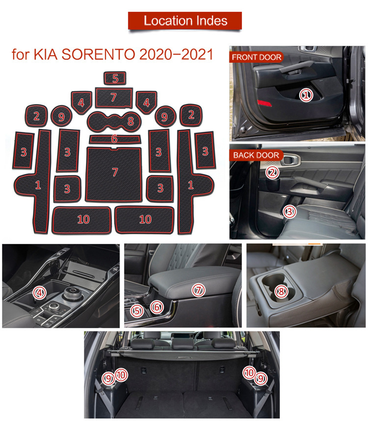 - Direct Fitment: A perfect replacement for 2020 Kia Sorento door slot pads, cup holder liners, and armrest storage box mats.