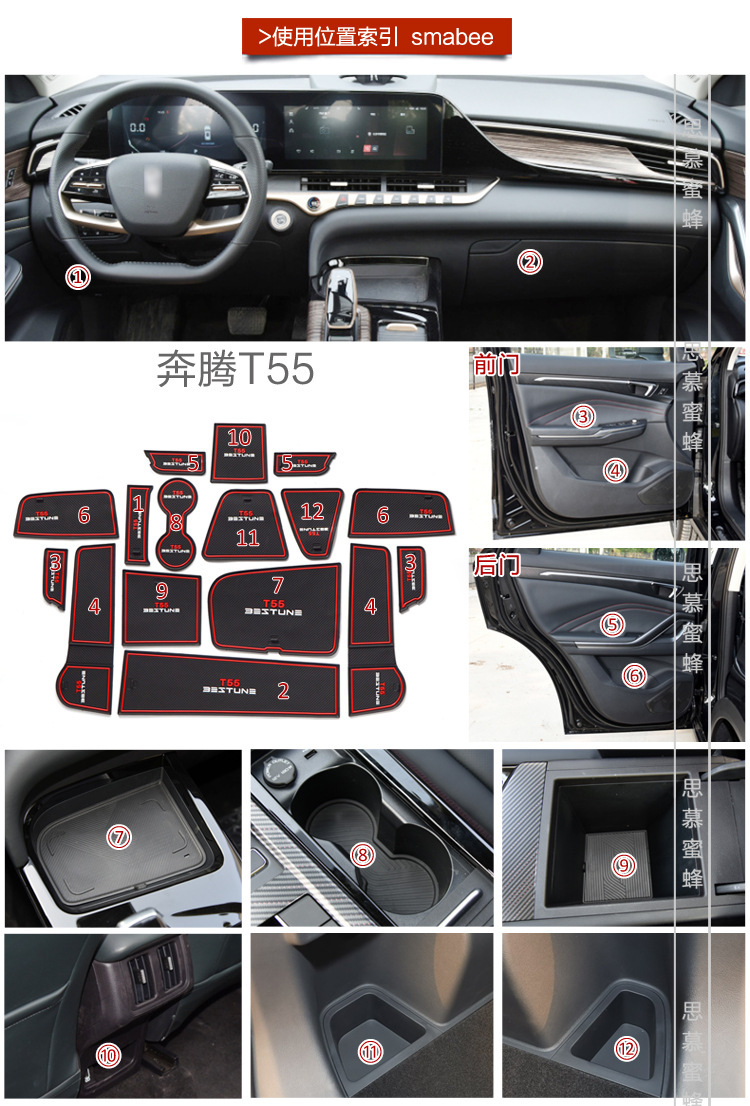 - Direct Fitment: A perfect replacement for your Bestune T55 interior storage spaces. Specifically designed for door slots, center console, and cup holders.