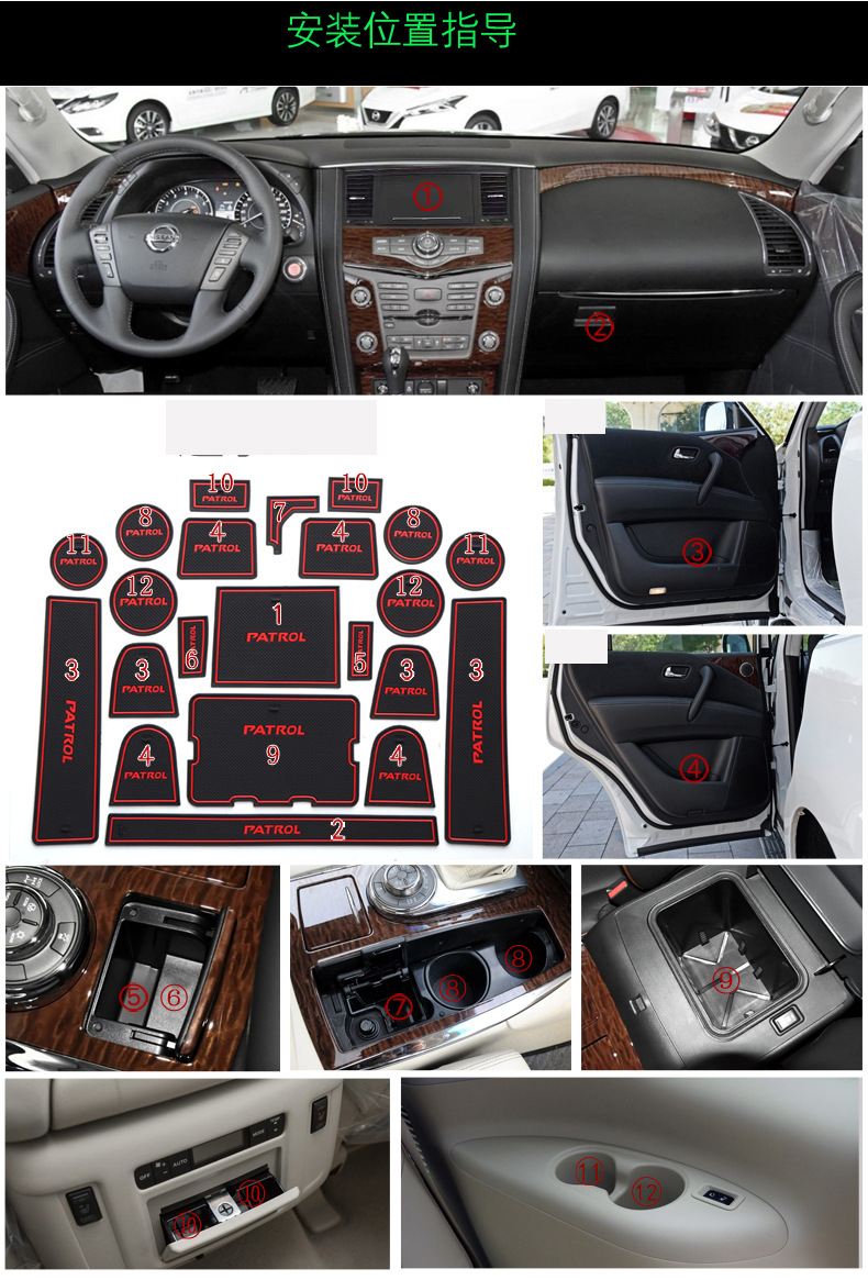 Silicone Rubber Anti-Slip Door Slot Mats Cup Holder Liners for Nissan Patrol Y62