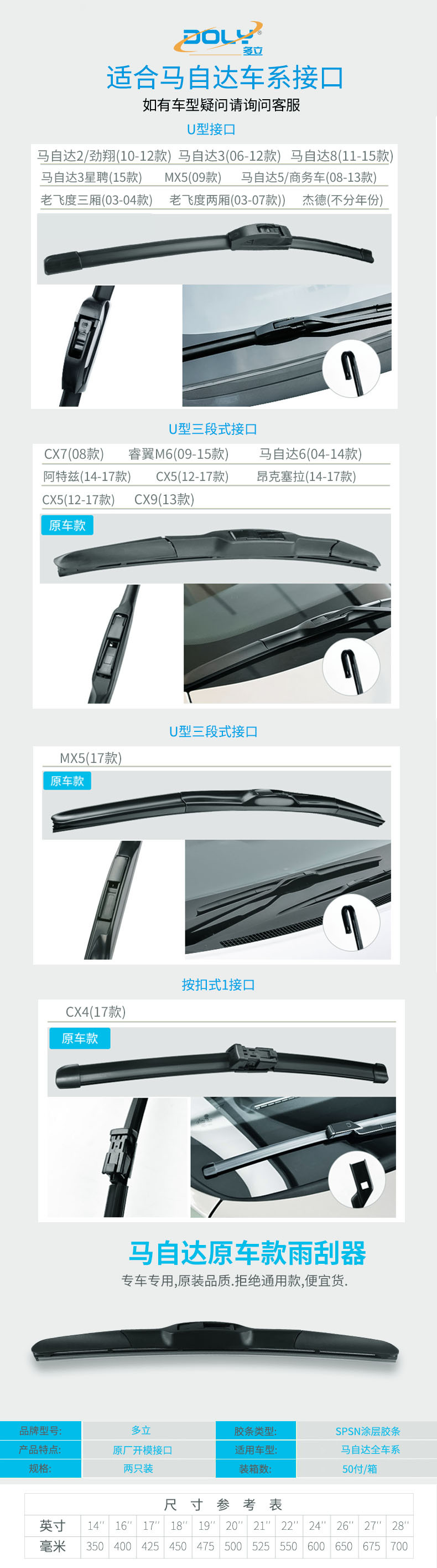 Silicone Rubber Wiper Blade for Mazda 3 Axela Starry Sky Atenza 6 Ruiyi CX-5 4 Original Wiper Strips