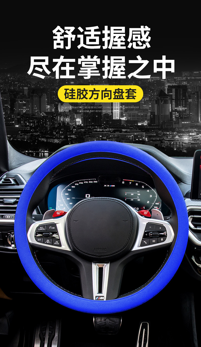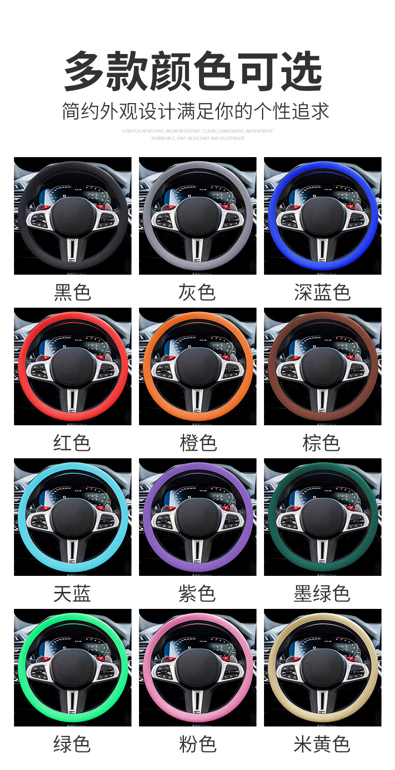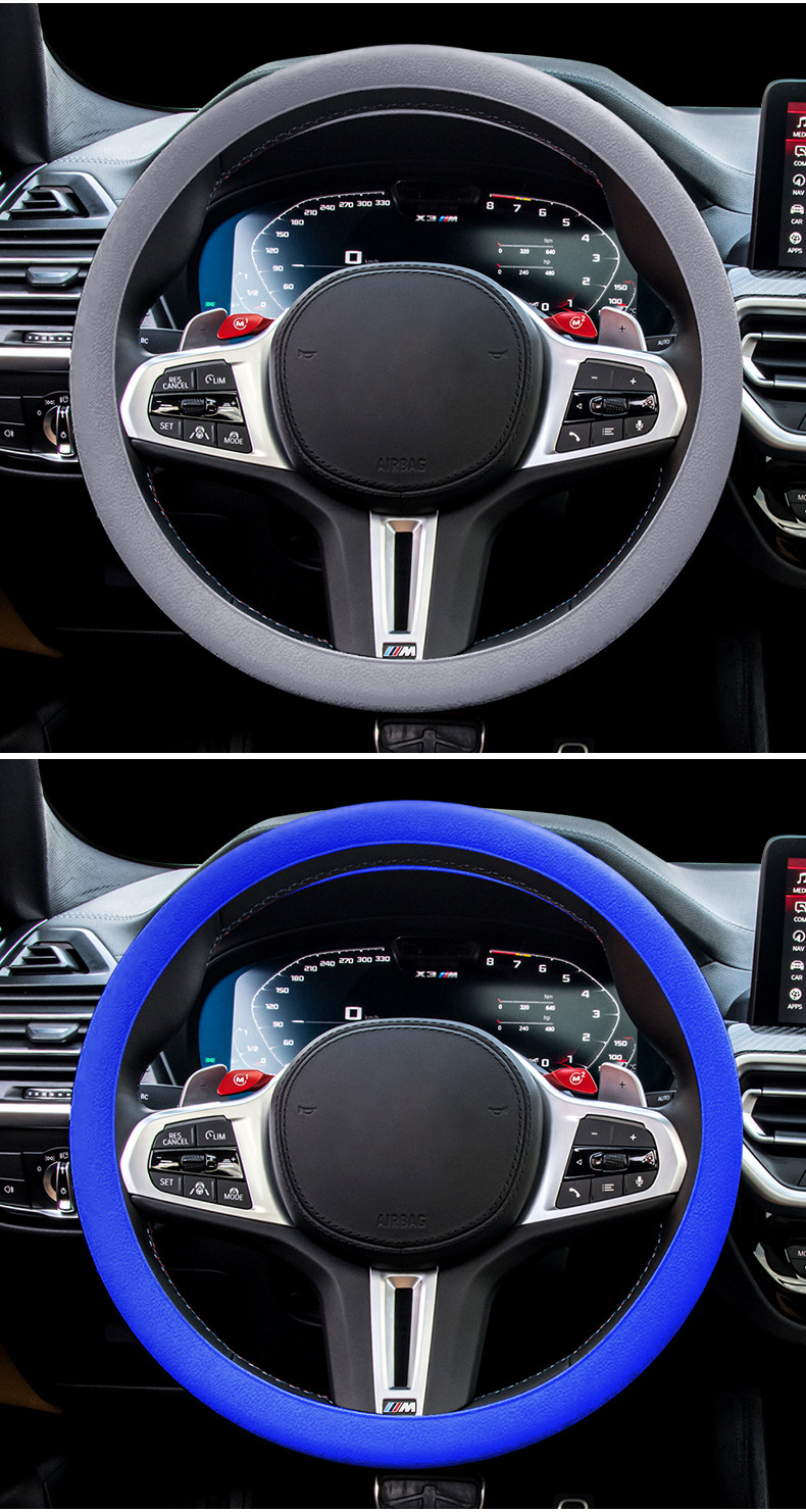 - Complete Package: Includes 1x Universal Silicone Steering Wheel Cover. Available in various colors (Black, Grey, Blue, Red are visible in the image). Please verify your steering wheel shape and size before purchasing.