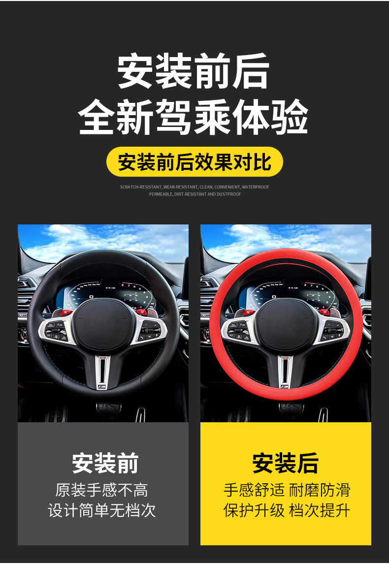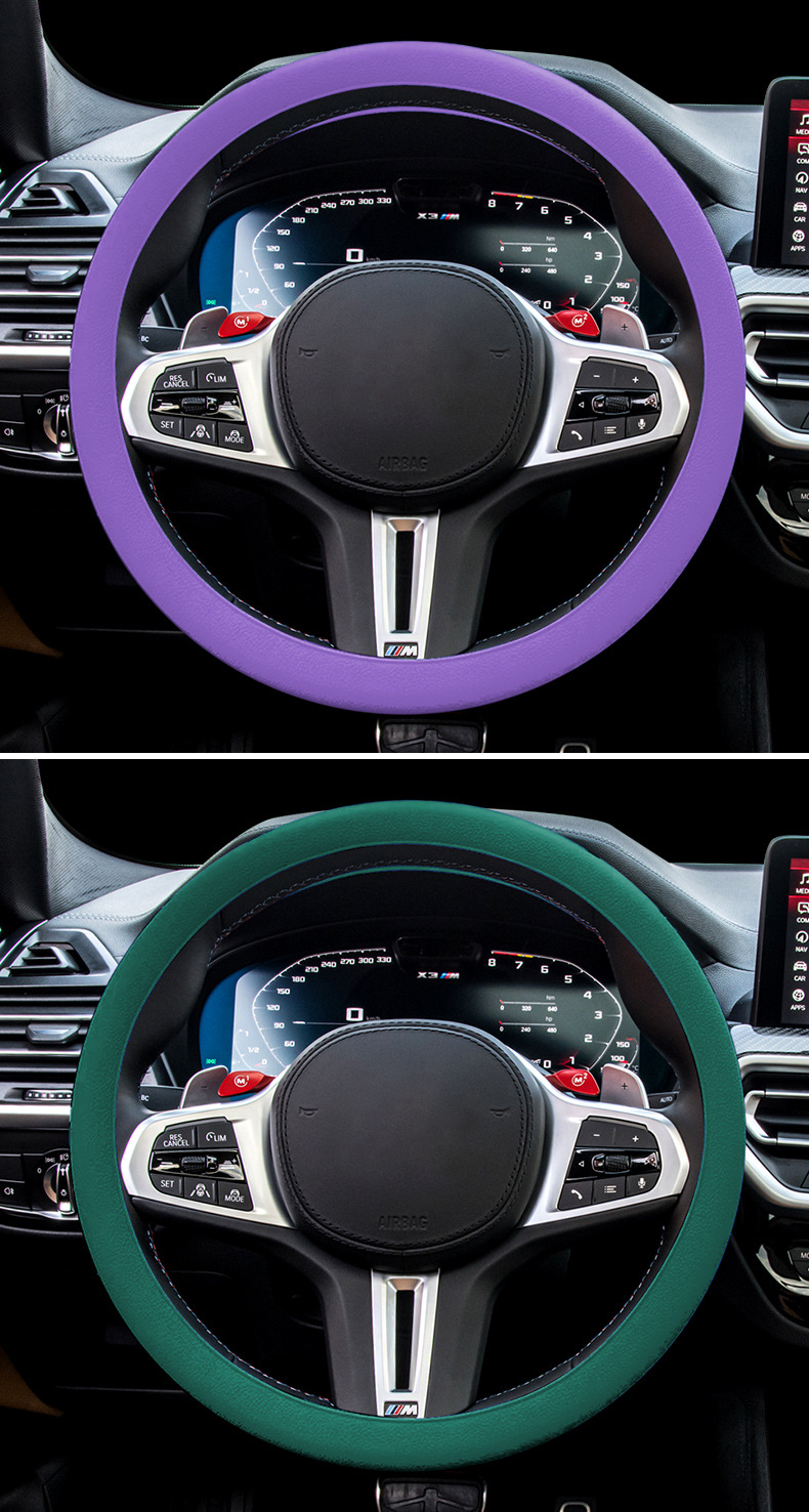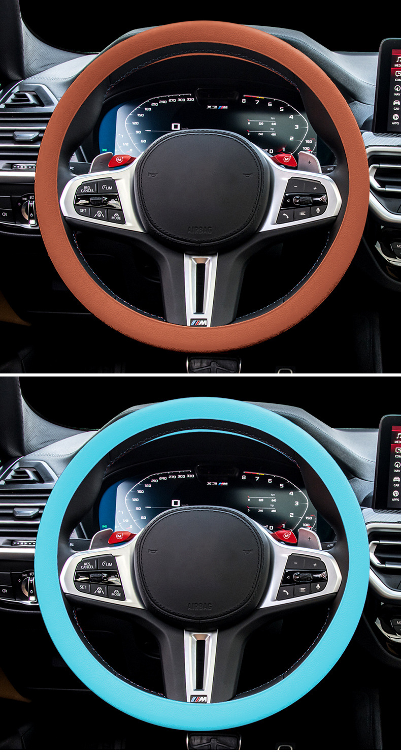 - Complete Package: Includes 1x Universal Silicone Steering Wheel Cover. Available in various colors (Black, Grey, Blue, Red are visible in the image). Please verify your steering wheel shape and size before purchasing.