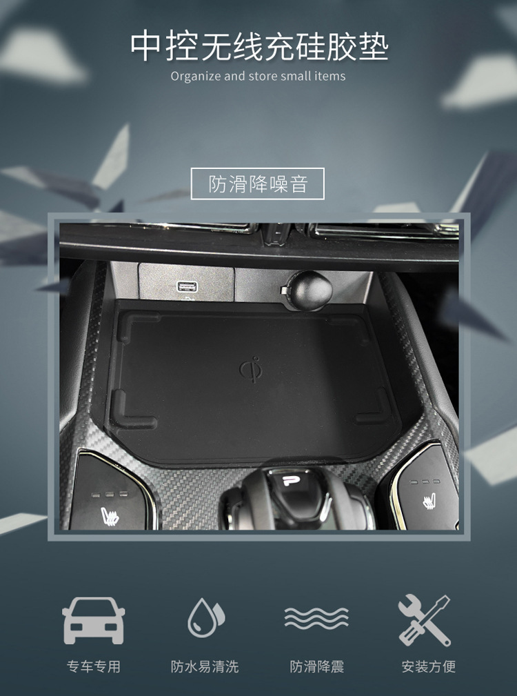 - Functional Design: Features a dedicated area for wireless charging with an anti-slip surface, preventing items from sliding around while driving. Helps keep the console organized.