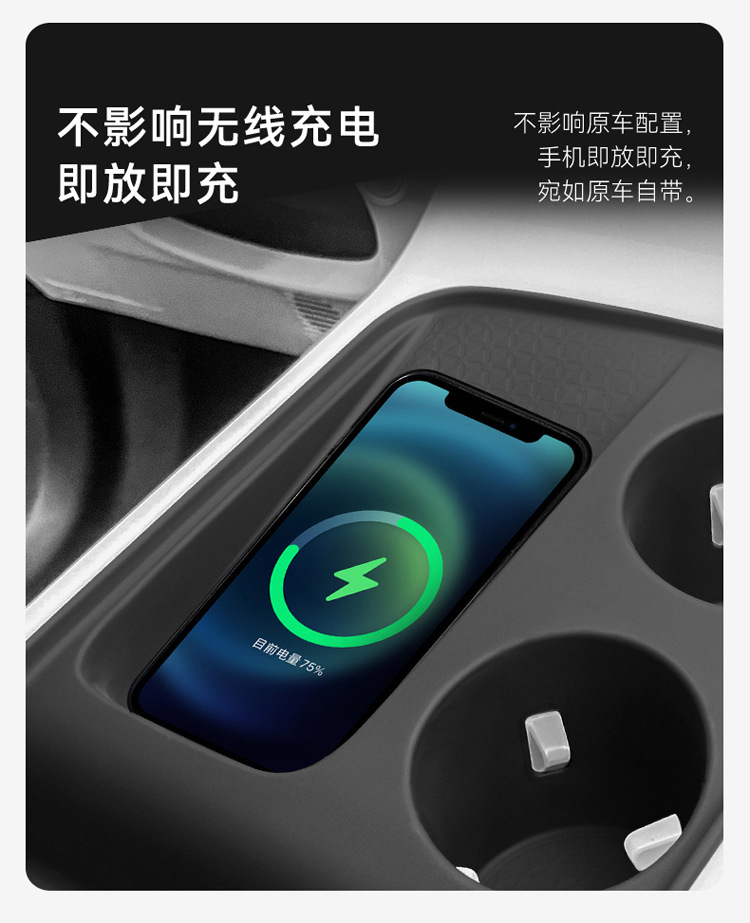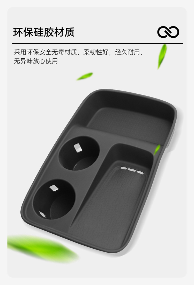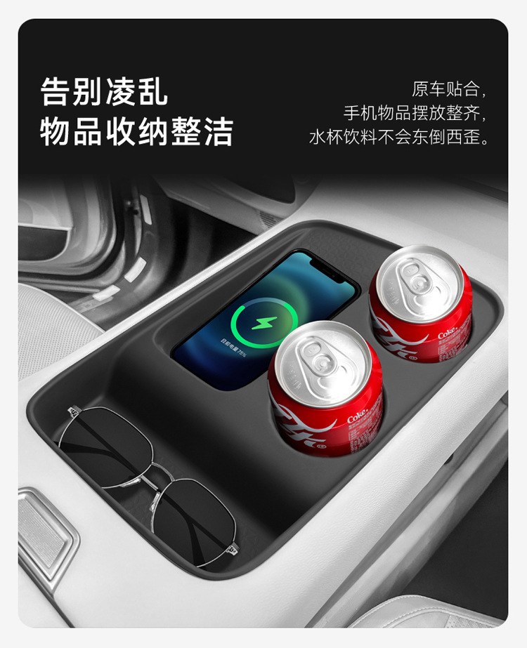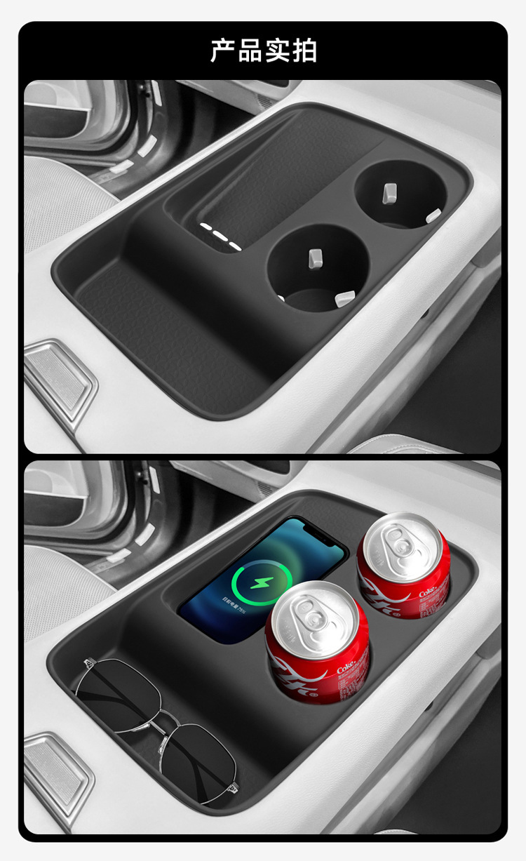 - Multi-functional Design: Integrates a wireless charging area for smartphones, a secure anti-slip mat for various items, and dedicated cup holder inserts to prevent drinks from tipping over.