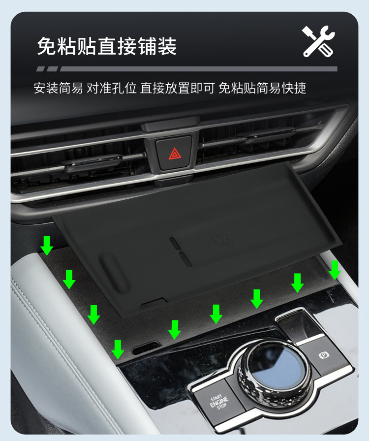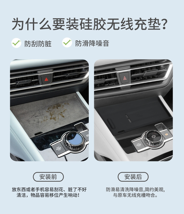 - Easy Bolt-On Installation: Simply place the silicone mat into the central control wireless charging area. No modifications are required for a perfect fit.