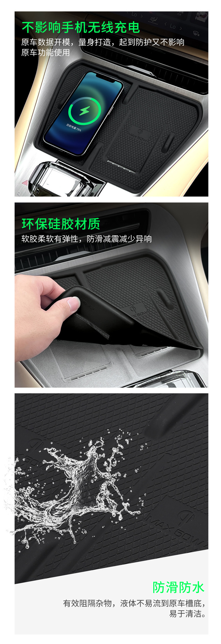 - Complete Package: Includes 1x black silicone wireless charging pad & storage mat, exactly as pictured. Please verify fitment details before purchasing.