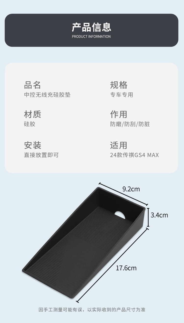 Silicone Wireless Charging Pad Storage Mat for 2024 GAC Trumpchi GS4 MAX Center Console