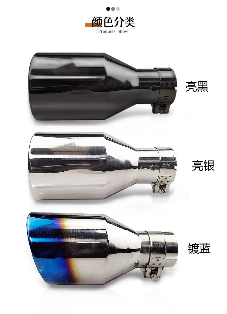 Stainless Steel Exhaust Muffler Tip (63-76mm) Dual Outlet, Straight/Bent, 1-into-2