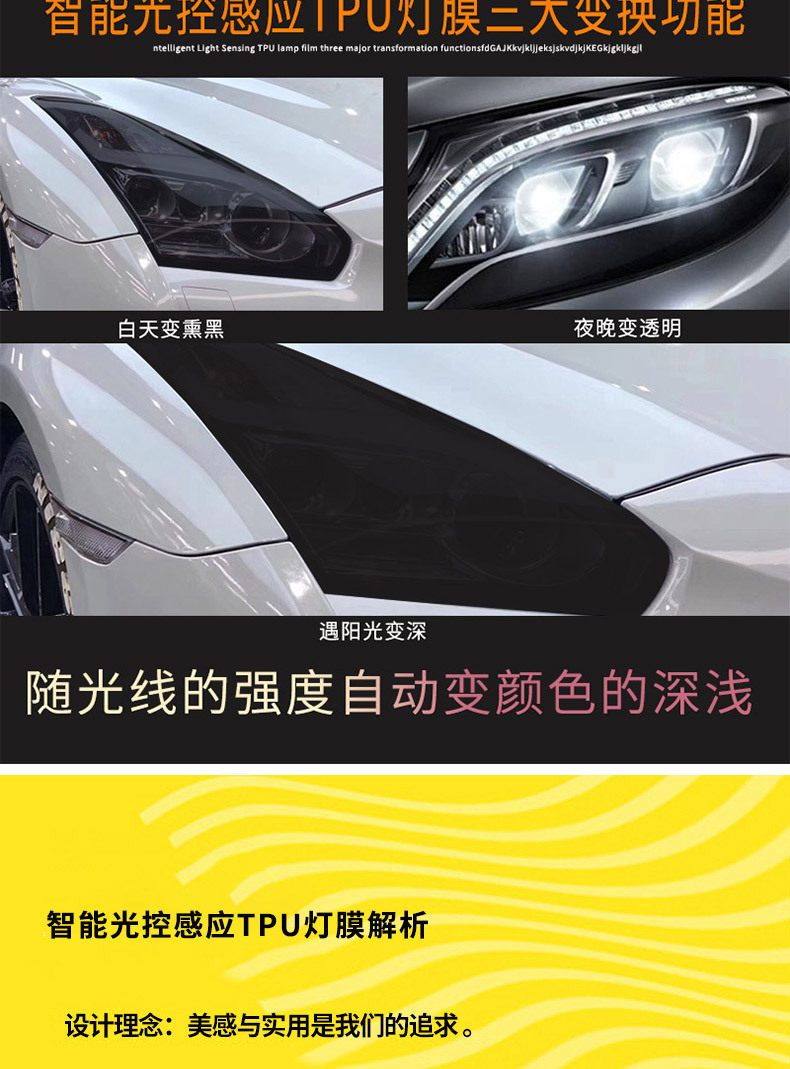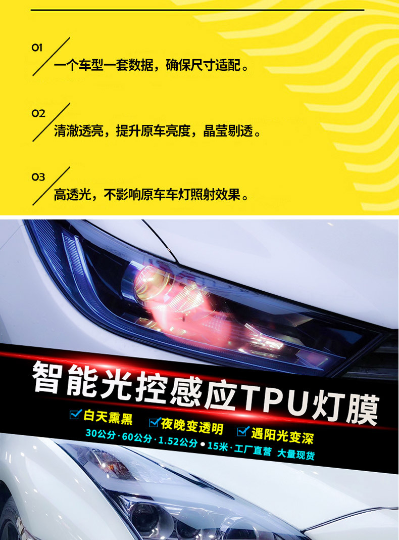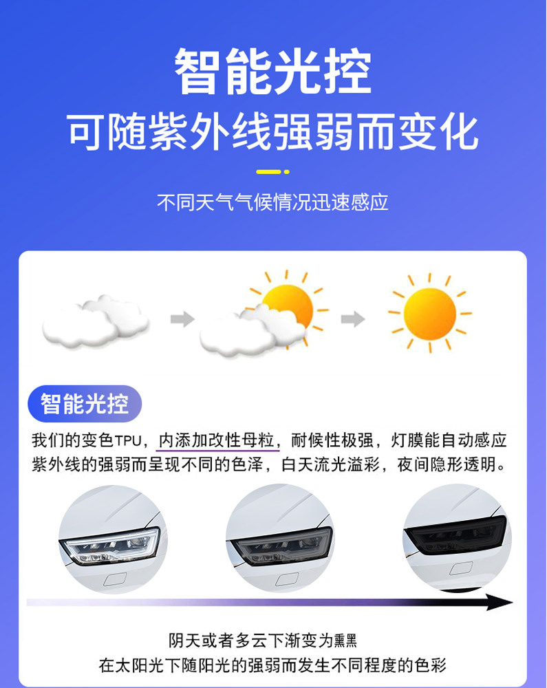 Smart Light Sensitive TPU Headlight Tint Film Protection Scratch Resistant TPH Tail Light Film for Car