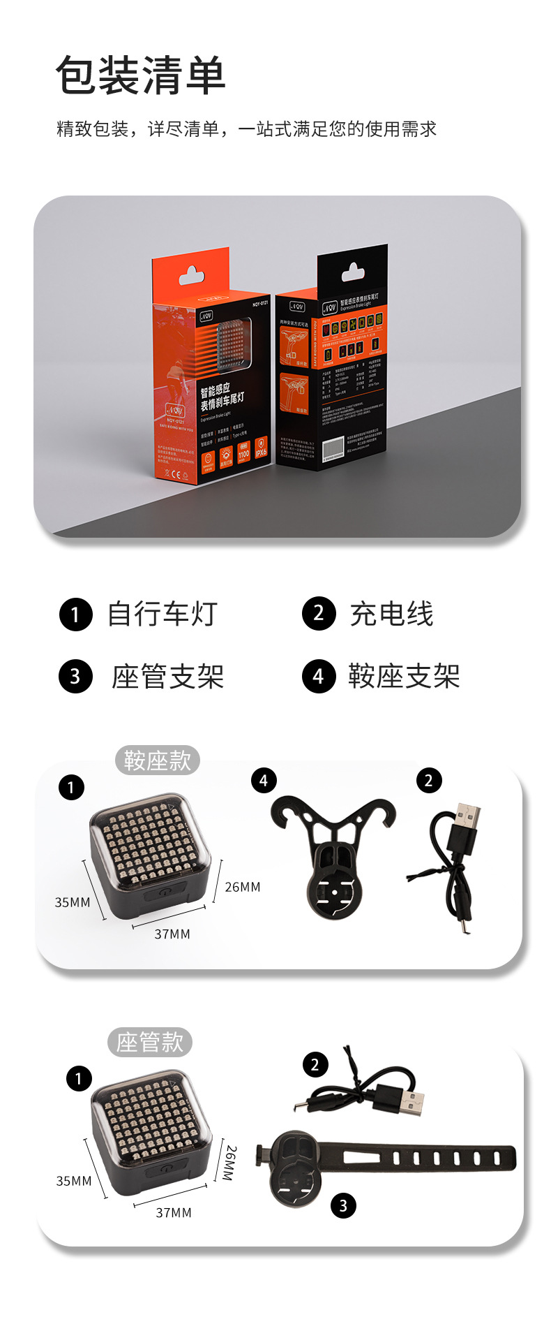 - Complete Package: Includes 1x Smart Sensing Bicycle Tail Light and 1x USB charging cable, exactly as pictured. Please ensure proper mounting before riding.