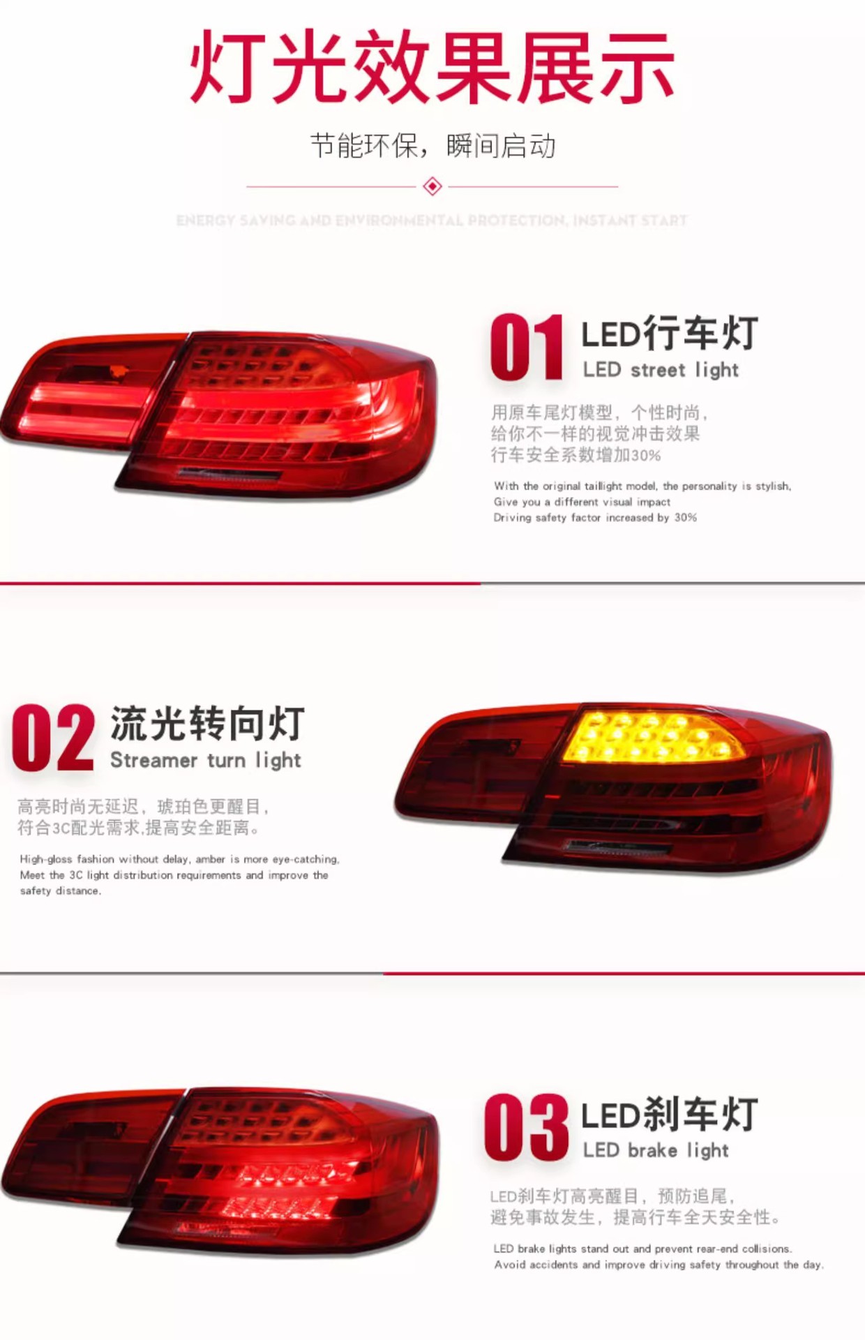- Complete Set: Package includes a full set of LED tail light assemblies (red or black option available, one set per purchase), providing a comprehensive upgrade for your BMW E92’s lighting system.