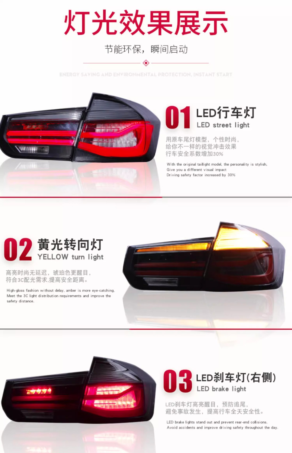 Smoked LED Flowing Turn Signal Taillight Assembly for BMW 3 Series F30 F35