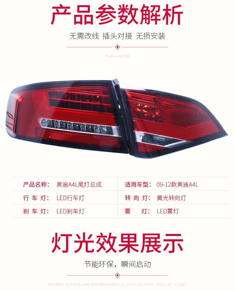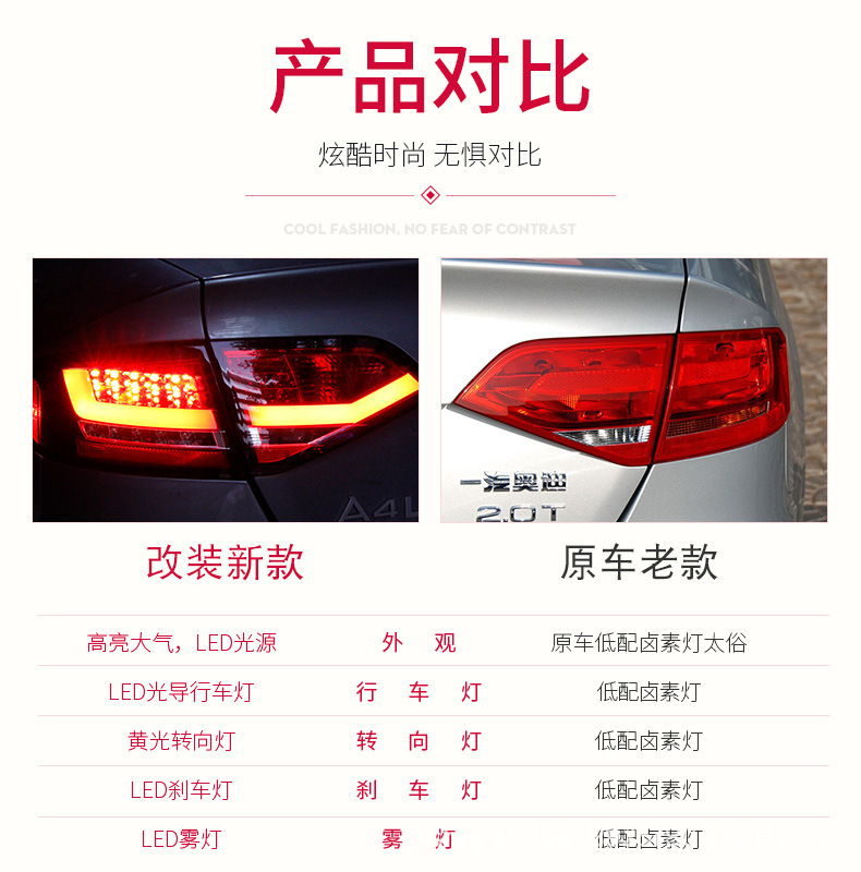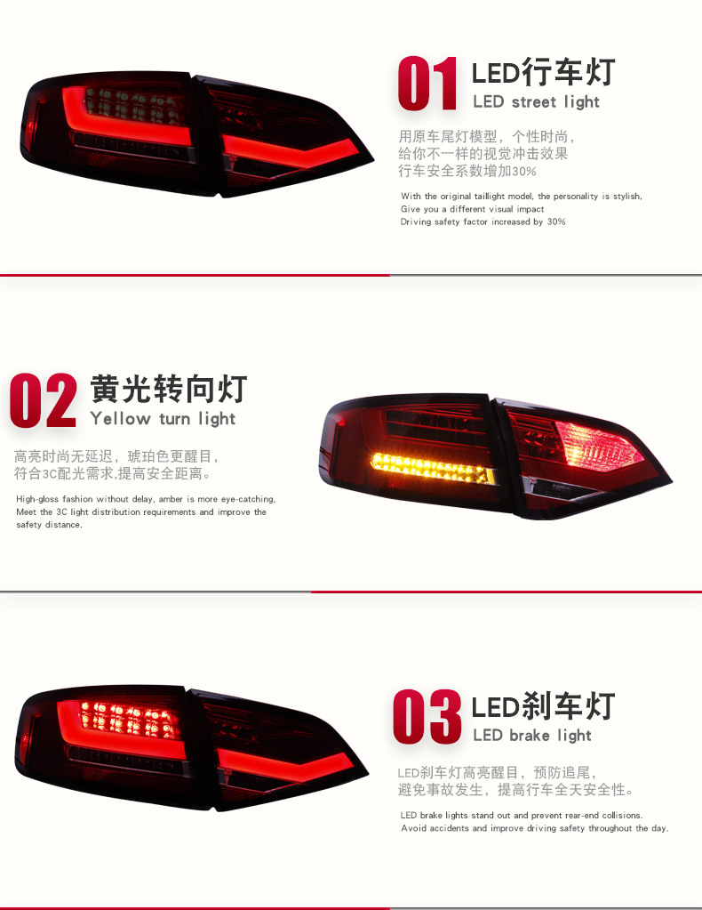 - Stylish Smoked Finish: Upgrade your Audi A4L’s rear aesthetics with a sleek, smoked lens design that adds a contemporary and aggressive look, differentiating your vehicle with a customized, high-end appearance.