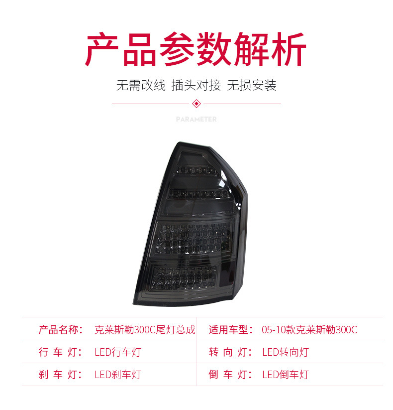 - Stylish Smoked Lens Design: Upgrades your vehicle’s rear aesthetics with a sleek smoked lens finish, giving your Chrysler 300C a more aggressive and personalized look while maintaining excellent light output.