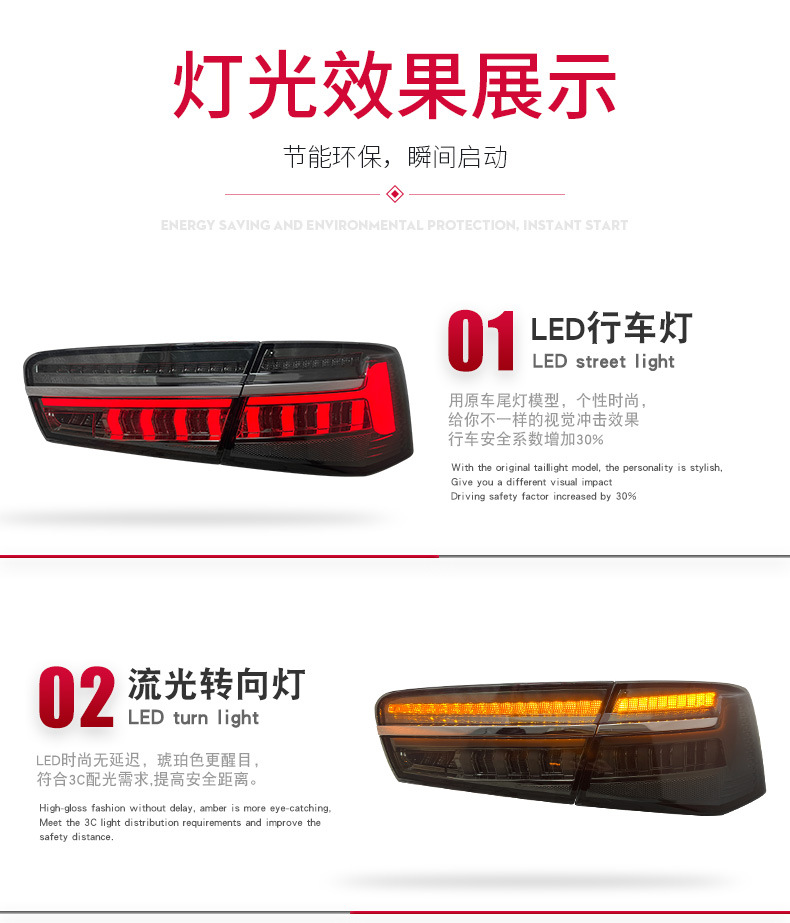 - Package Contents & Value: Each package includes one complete LED Tail Light Assembly (single side) as depicted, providing a comprehensive solution to refresh your Audi A6L’s rear lighting with a stylish, high-performance upgrade.