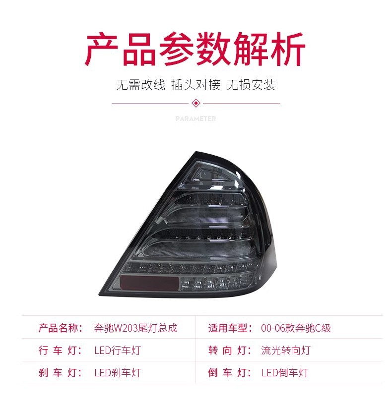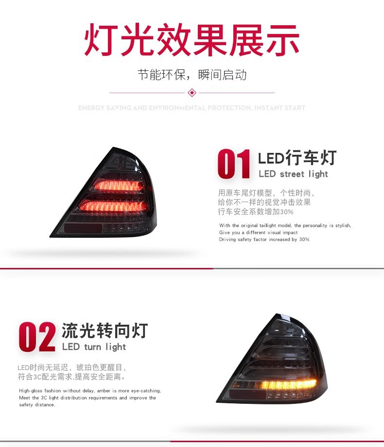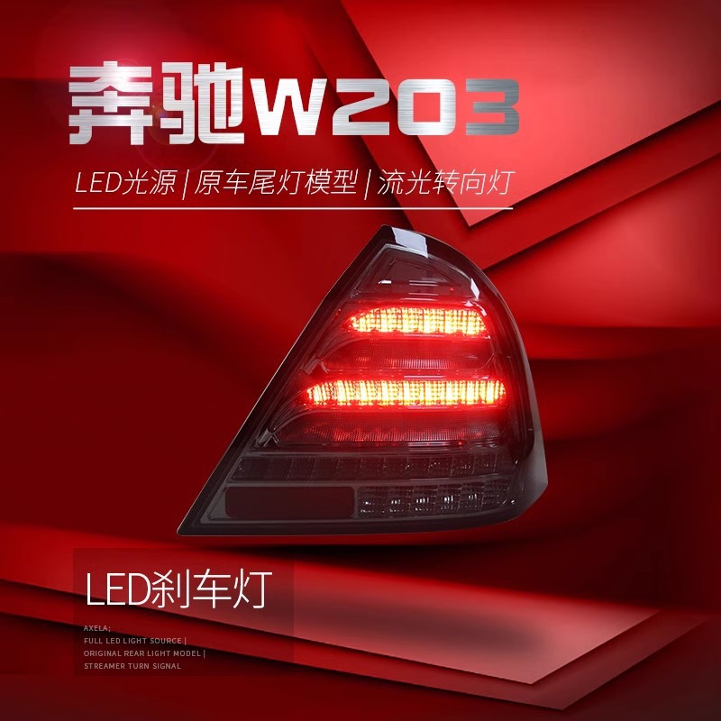 Smoked LED Tail Light Assembly with Flowing Turn Signal for Mercedes-Benz C-Class W203 2000-2006