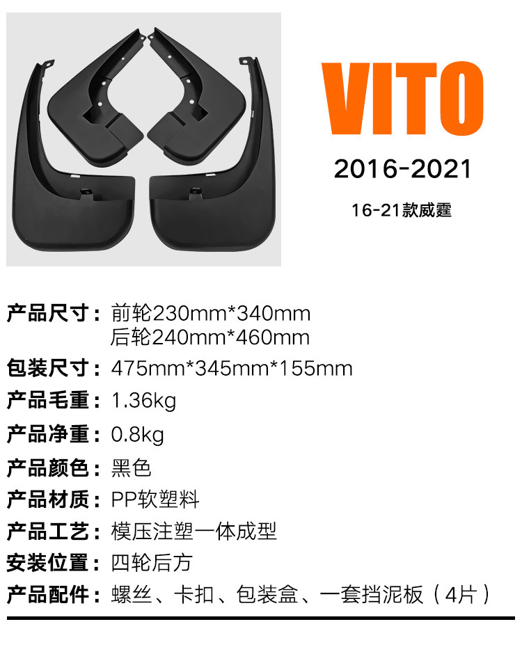Soft PP Plastic Mud Flaps Splash Guards for Mercedes-Benz Vito W447 (2016-2021)