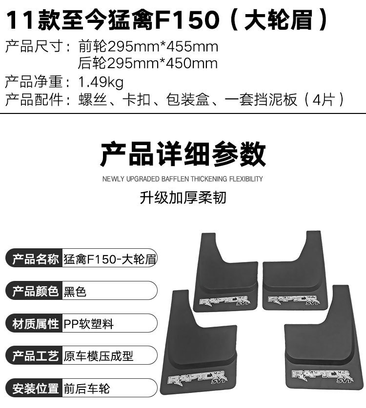 - Complete Protection Kit: Each package includes a set of front and rear mud flaps, providing comprehensive coverage for your tires and lower bodywork, keeping your F-150 Raptor cleaner and more pristine.