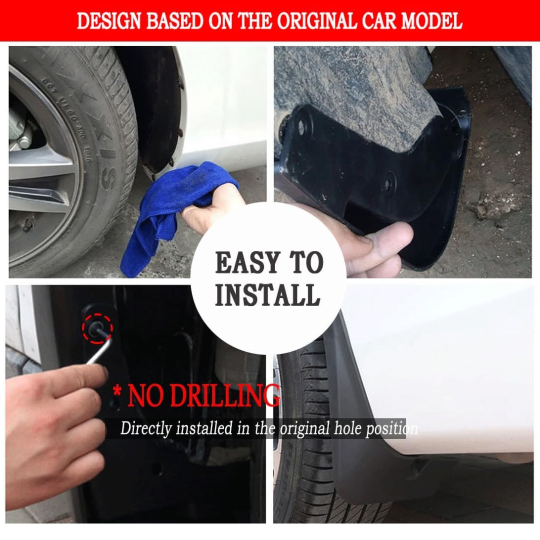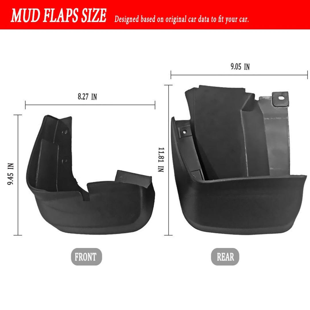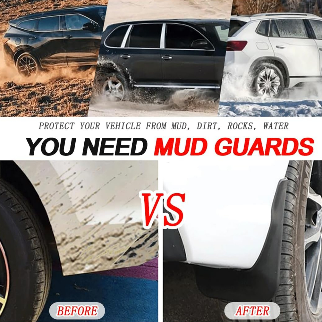 - Complete Protection Kit: Includes a full set of tire mud flaps (front and rear) for comprehensive vehicle protection. An essential accessory for maintaining your car’s cleanliness and preserving its finish in various driving conditions.