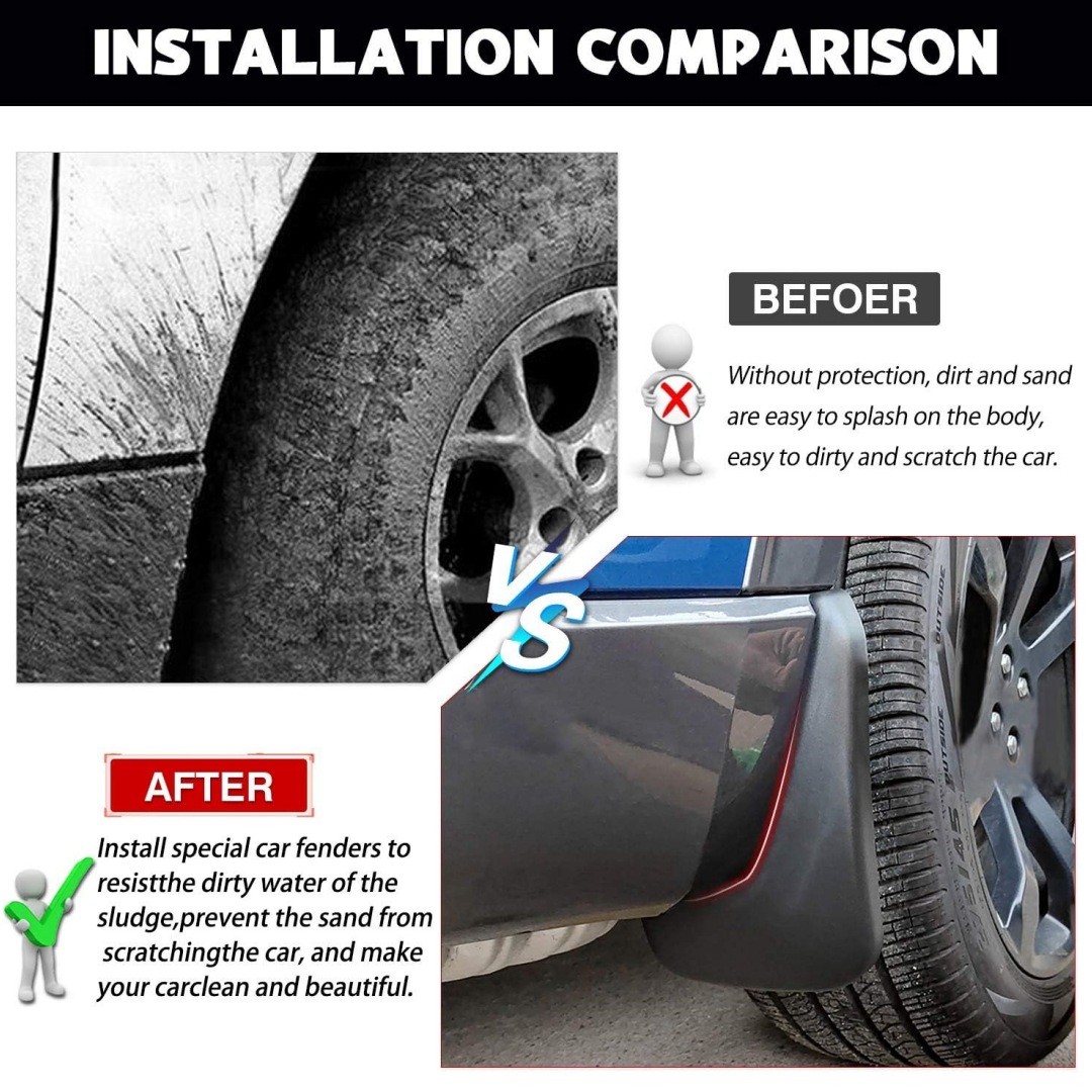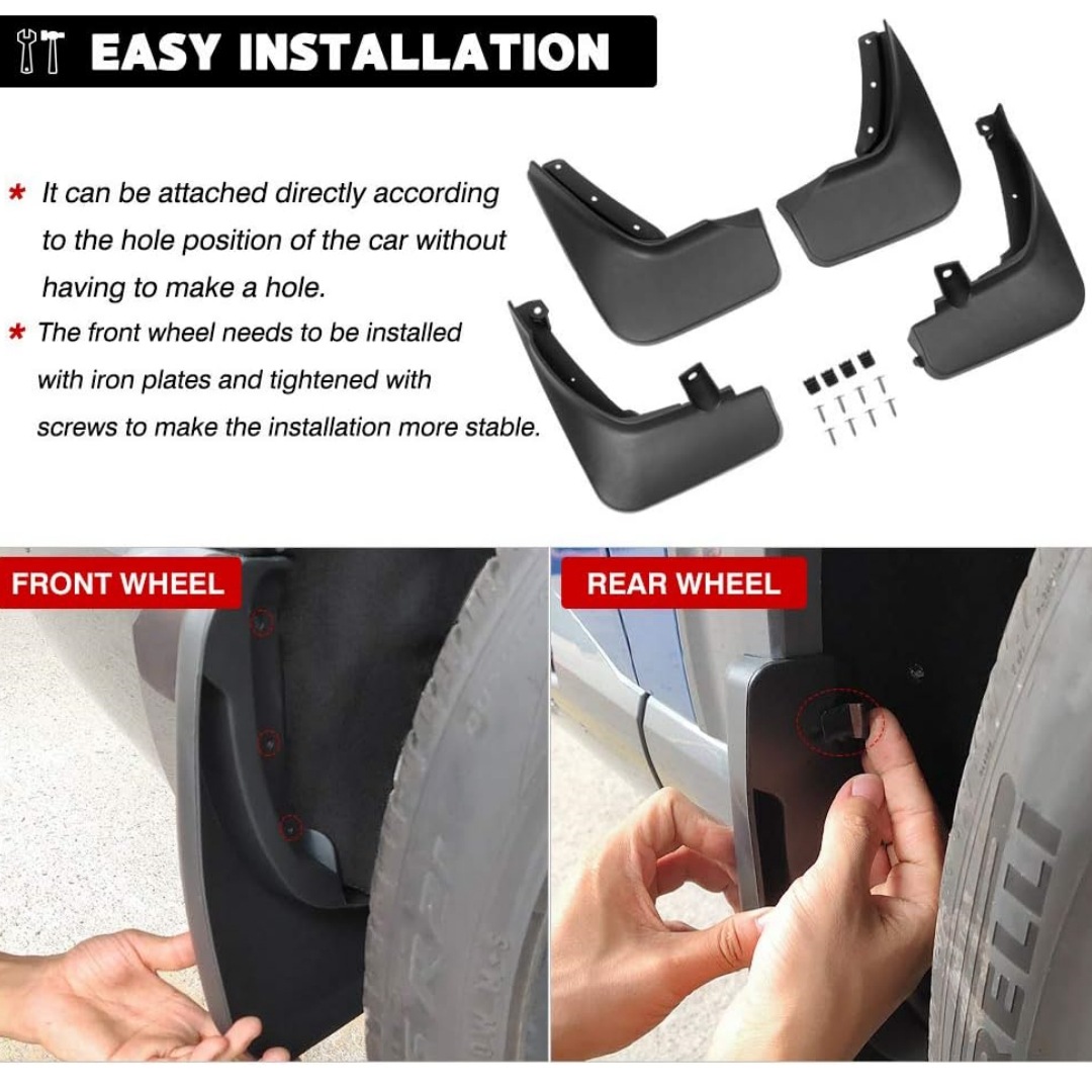 - Complete Set: Includes a full set of front and rear mud flaps for comprehensive vehicle protection. A must-have accessory for daily driving and off-road adventures.