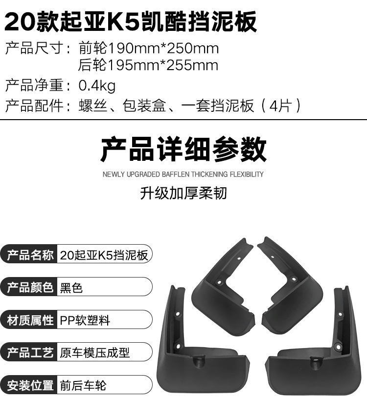 - Complete Set & Value: Includes a full set of front and rear mud flaps (4PCS total) for comprehensive vehicle coverage, delivering excellent value and essential protection for your Kia K5.