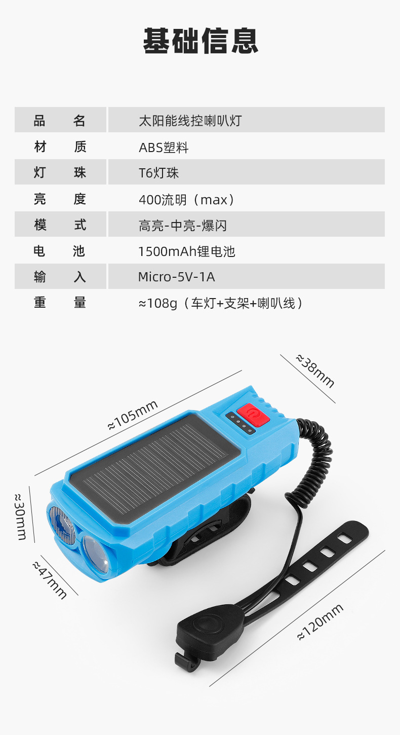 - Complete Package: Includes 1x Solar Powered Bike Headlight with Horn, exactly as pictured. Please verify details before purchasing.