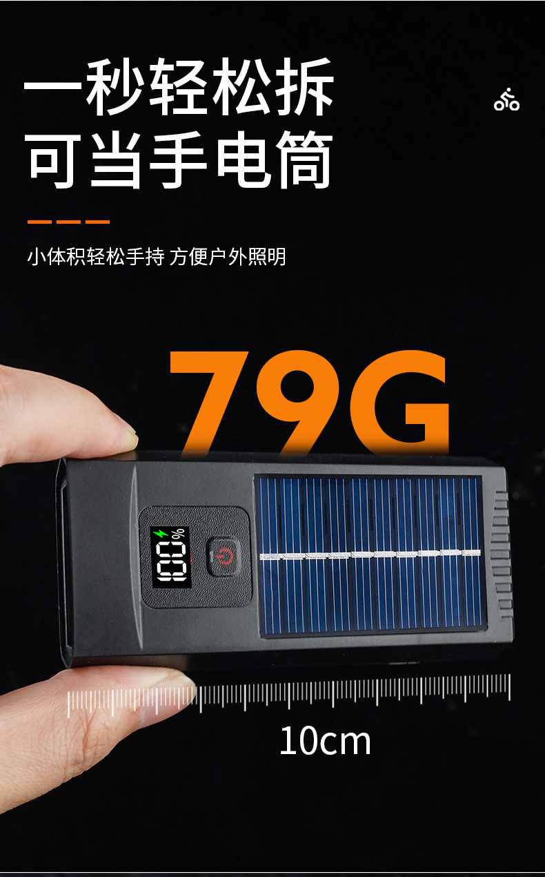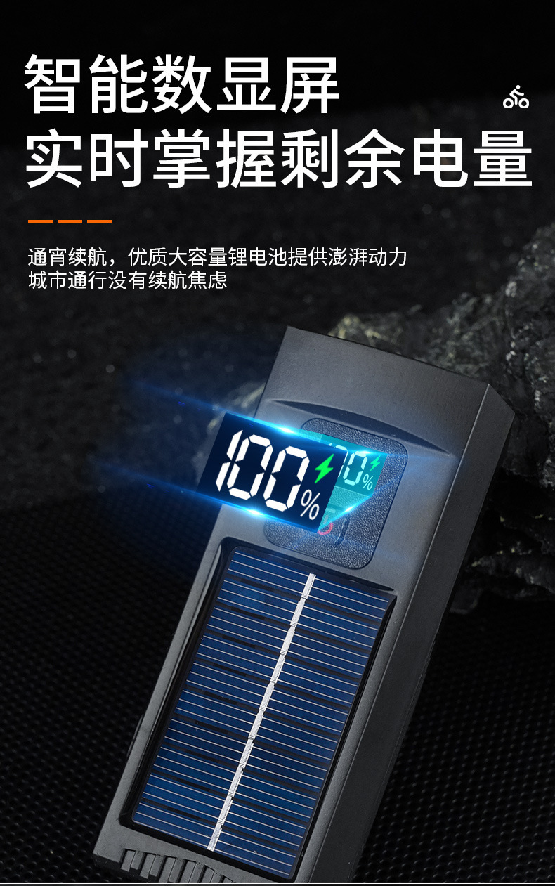 - Superior Construction & Material: Features a durable casing with an integrated solar panel on top for continuous charging, as visible in the product image. Built to withstand outdoor cycling conditions.