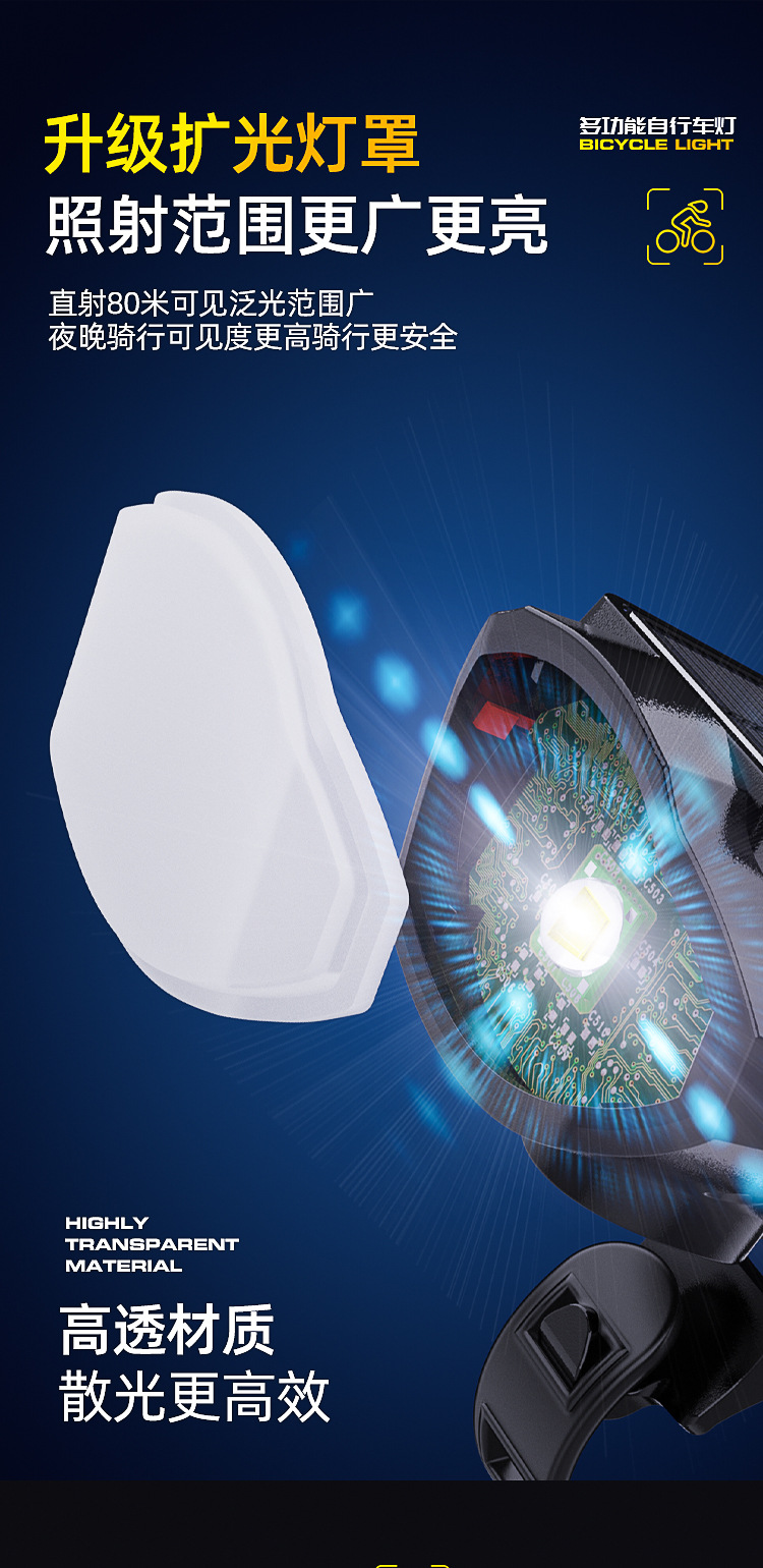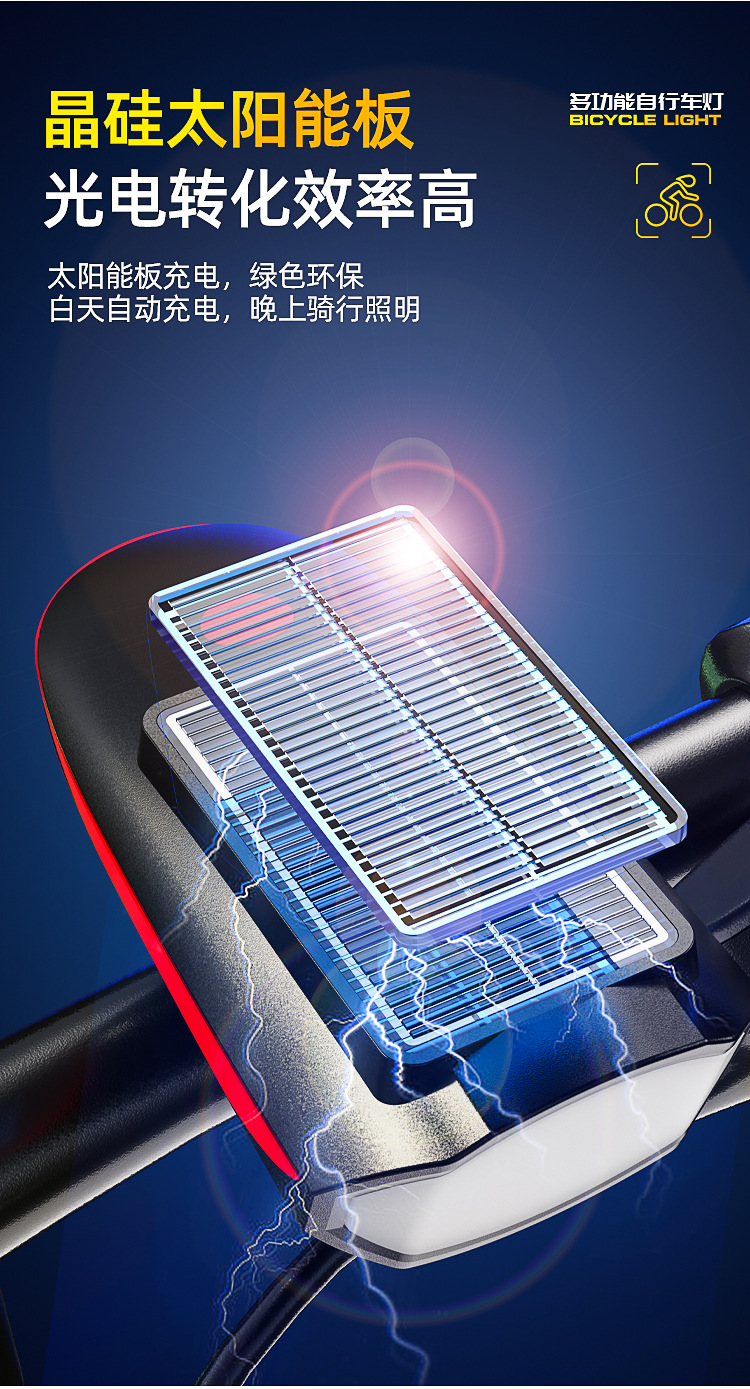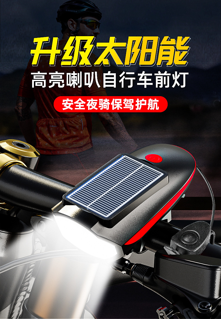 Solar Powered USB Rechargeable Bike Headlight with Horn for Mountain Road City Bikes