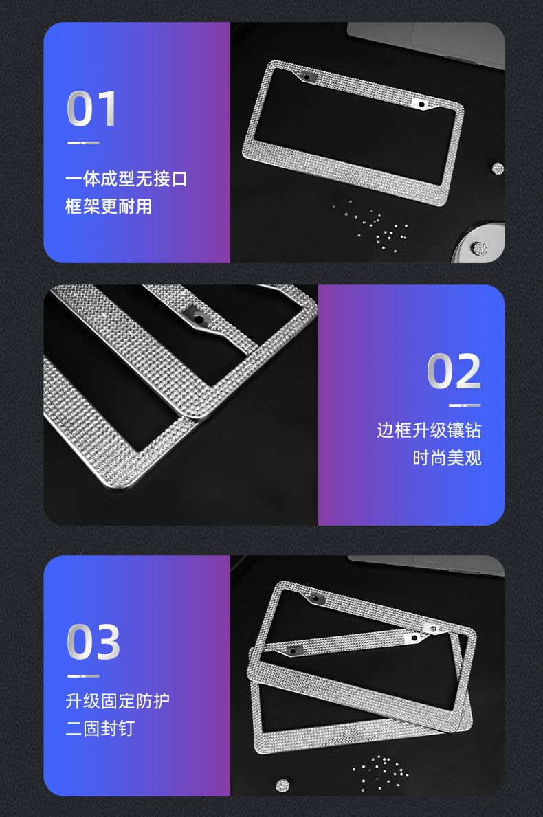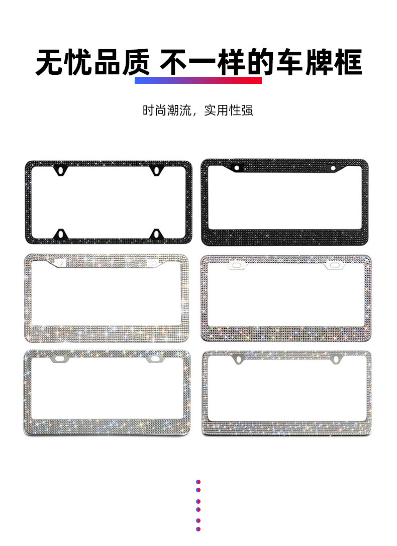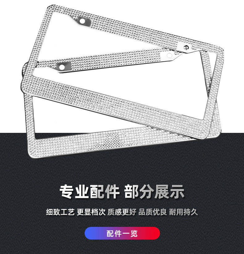 Stainless Steel Diamond Rhinestone License Plate Frame for US Standard Vehicles