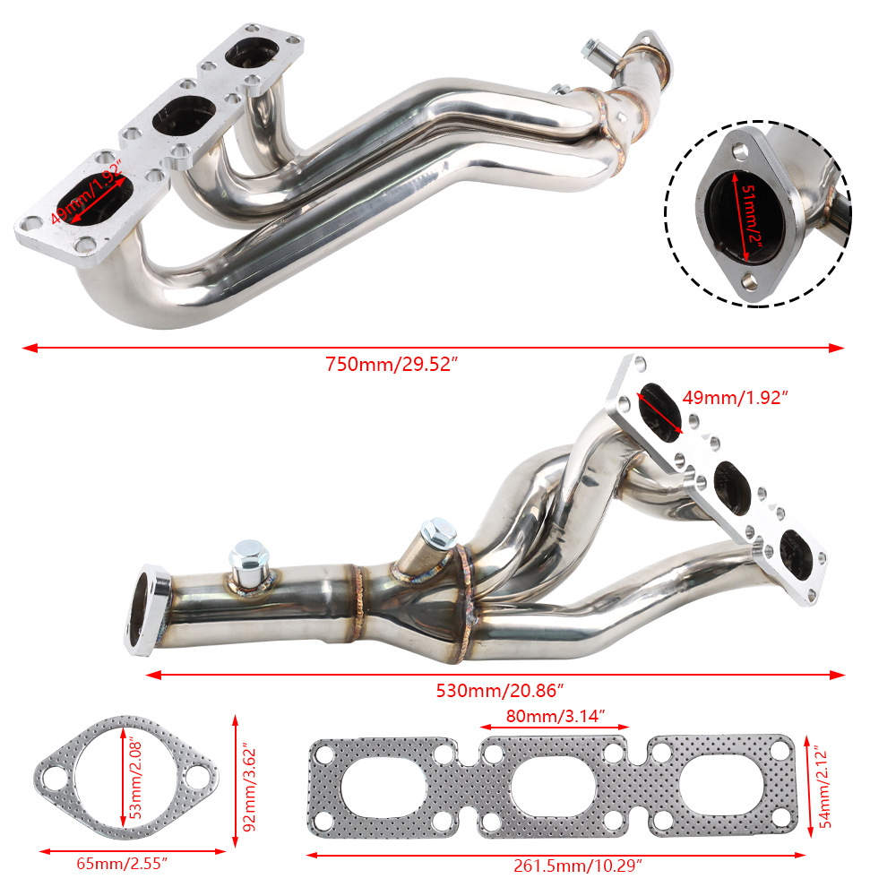 Stainless Steel Exhaust Header for BMW M54 Engine for BMW E46 323i 328i 330i (2000-2006), Z3 2.2i 2.5i 2.8L 3.0i (2000-2002)