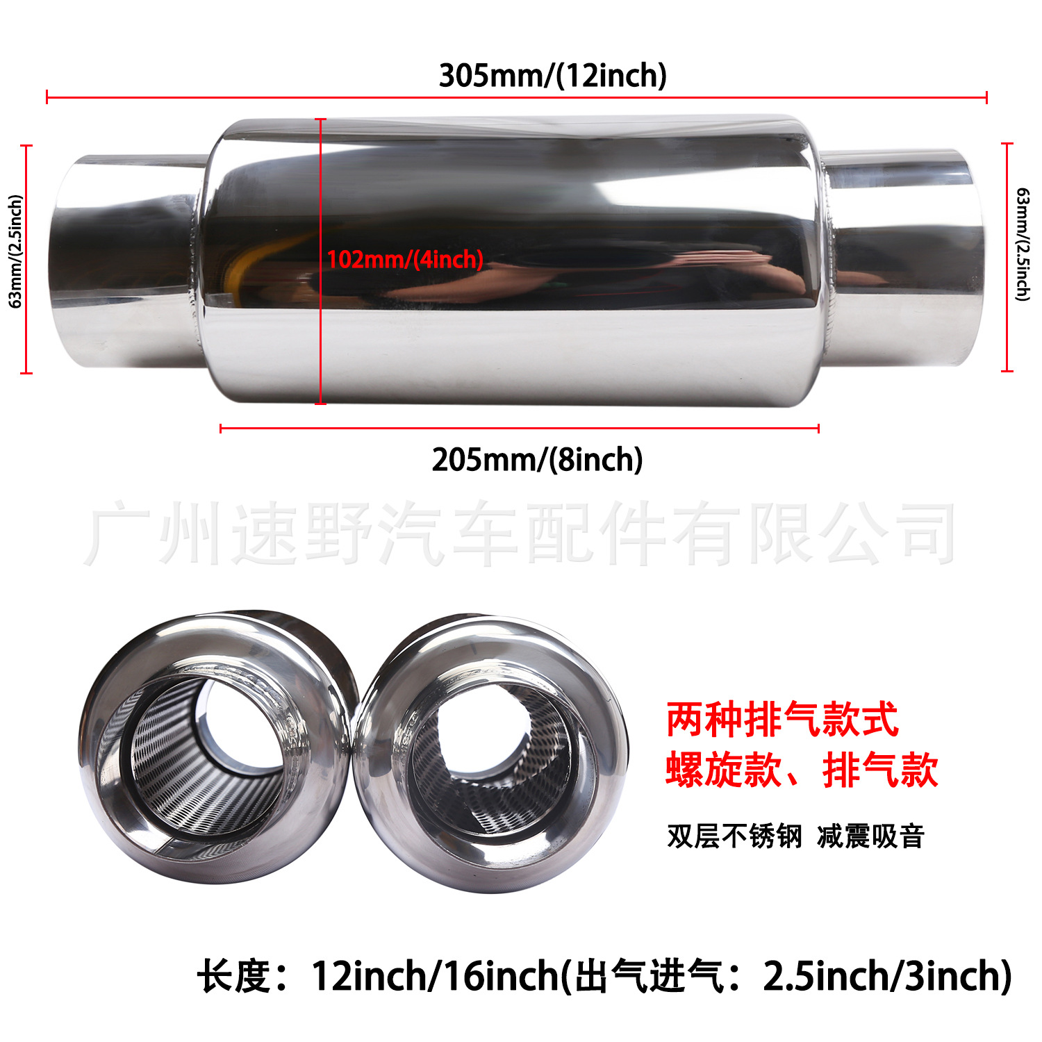 • Premium Stainless Steel Construction: Crafted from high-grade stainless steel, this exhaust muffler offers exceptional durability, corrosion resistance, and heat tolerance, guaranteeing long-lasting performance and a polished appearance.