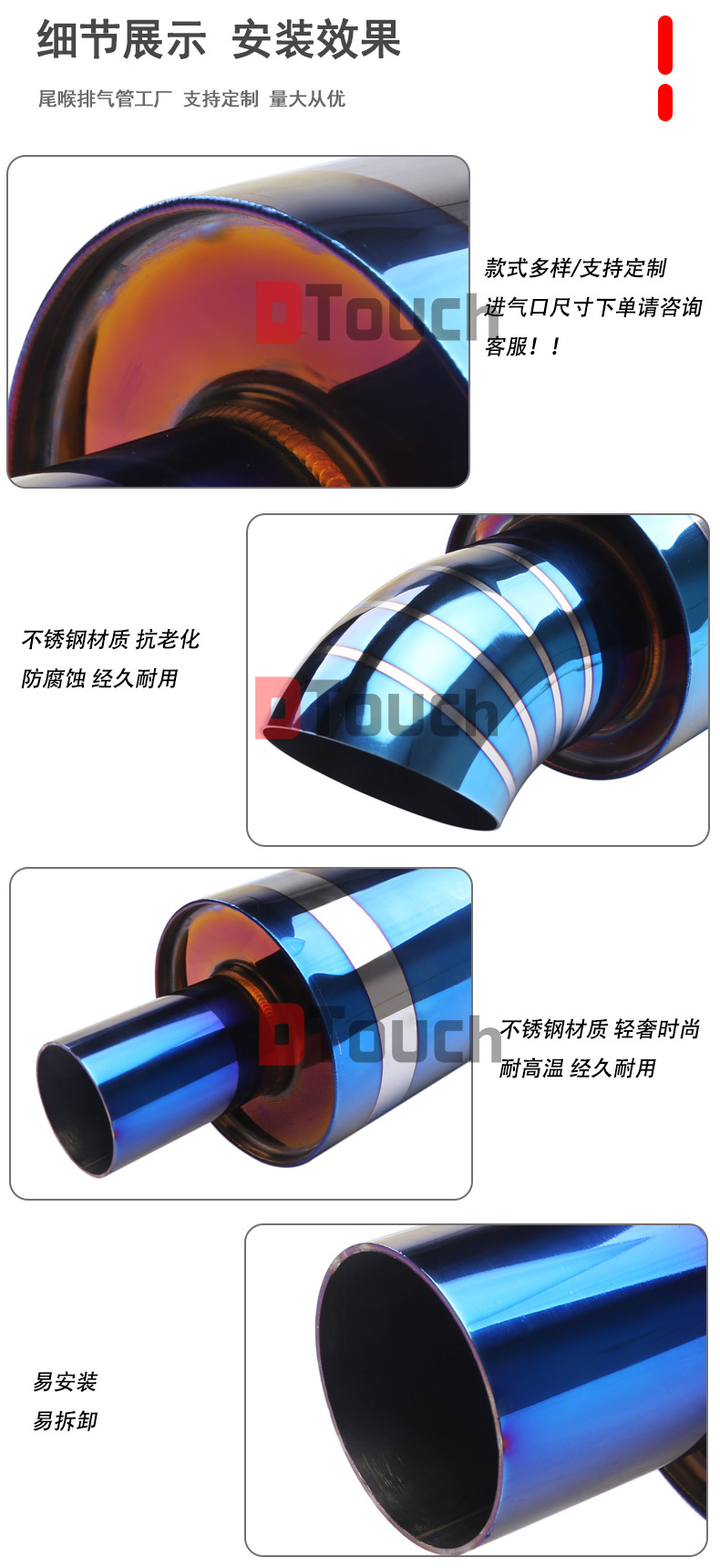 • Premium Stainless Steel Construction: Crafted from high-quality stainless steel, this exhaust pipe features a stunning burnt blue finish, ensuring durability, corrosion resistance, and a lasting aesthetic appeal.