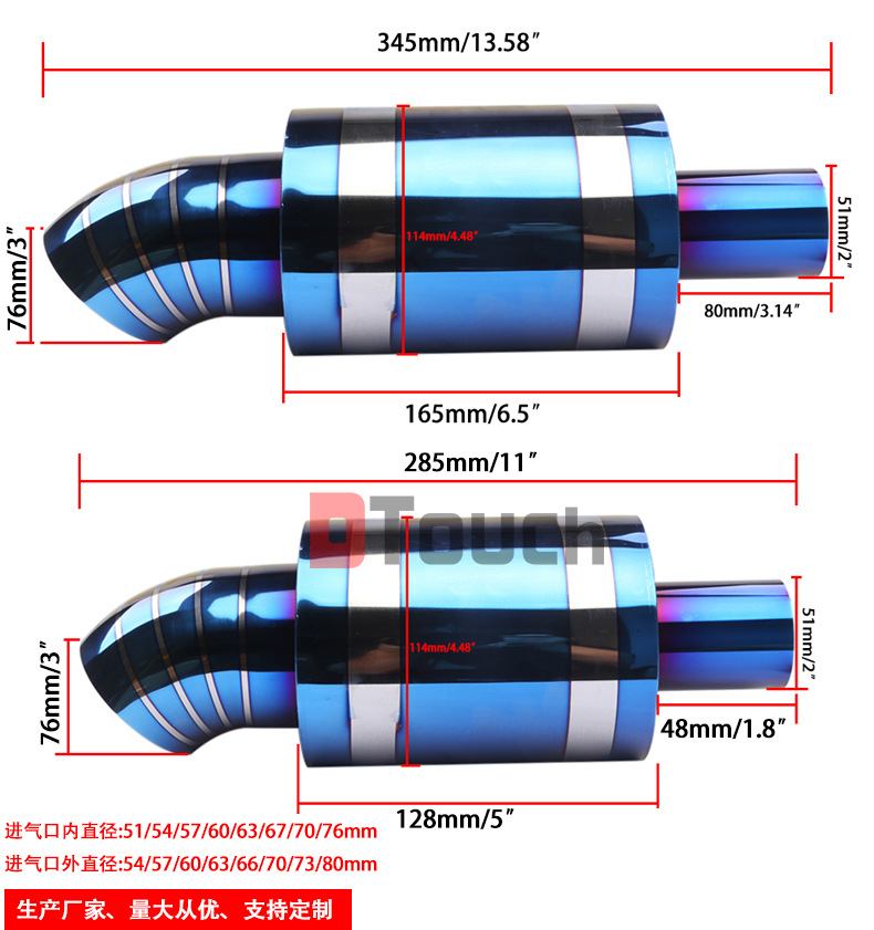 • Easy Installation & Universal Compatibility: With a 51-76mm inlet/outlet diameter, this tailpipe is designed for straightforward installation as a rear exhaust section, fitting seamlessly into various setups without complex modifications.