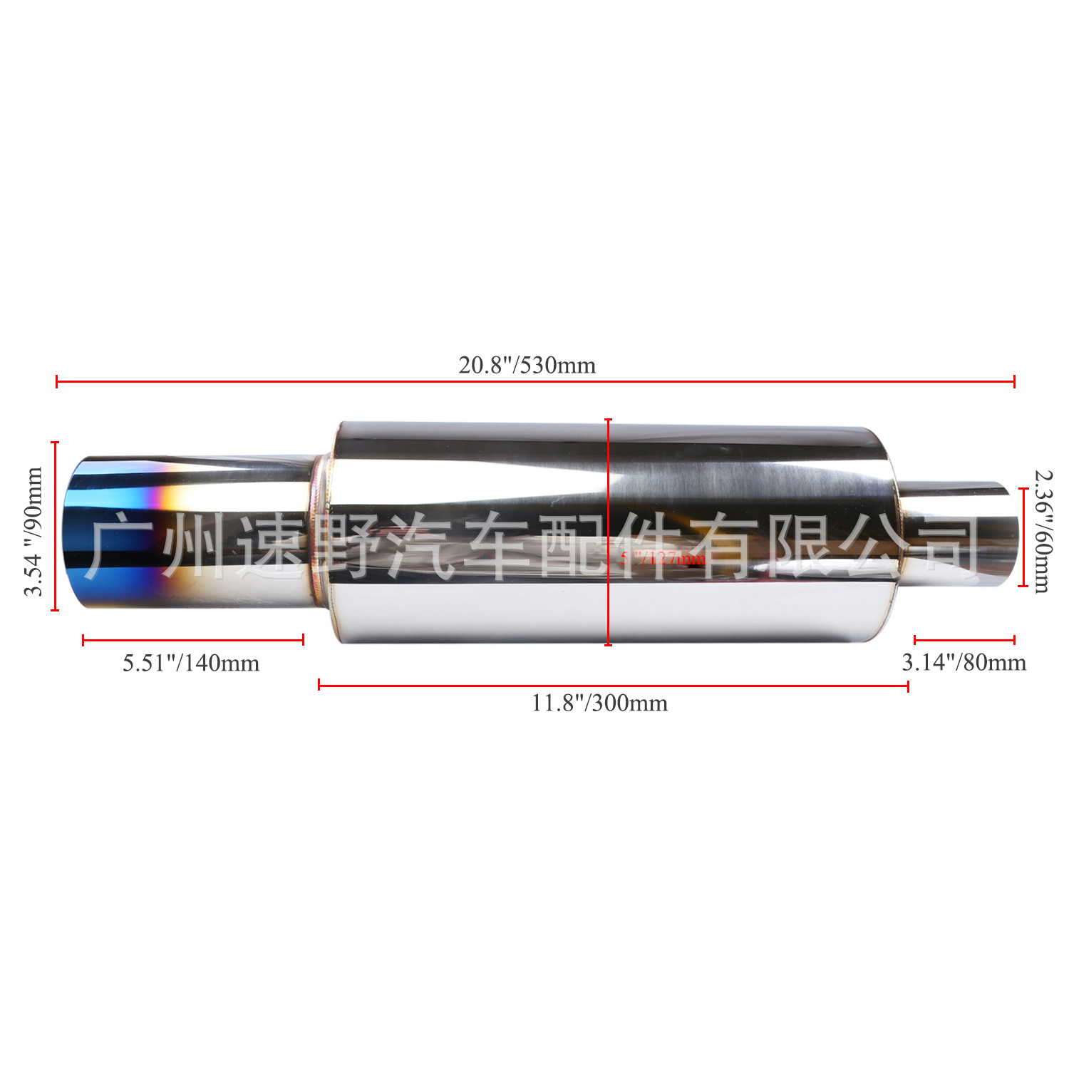 Stainless Steel Exhaust Muffler (63mm Inlet, 89mm Outlet, 127mm Diameter, Small Straight-Through Drum) for Universal Car
