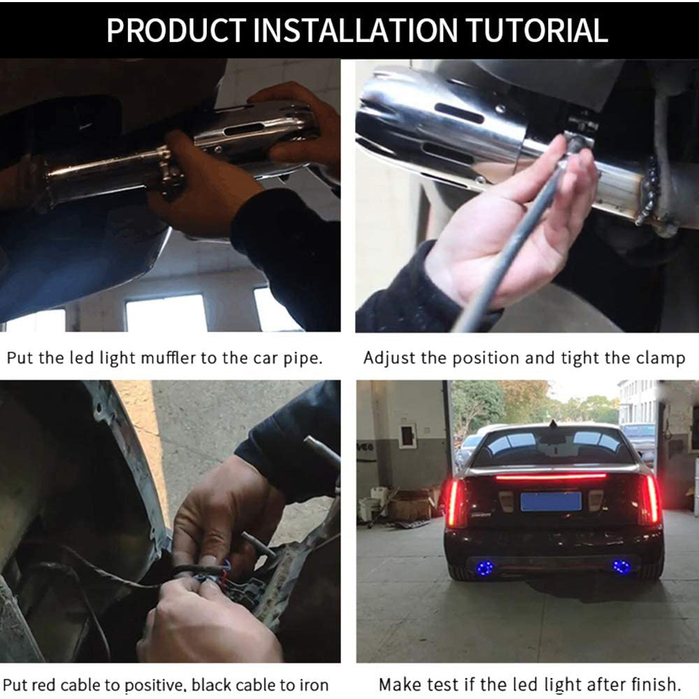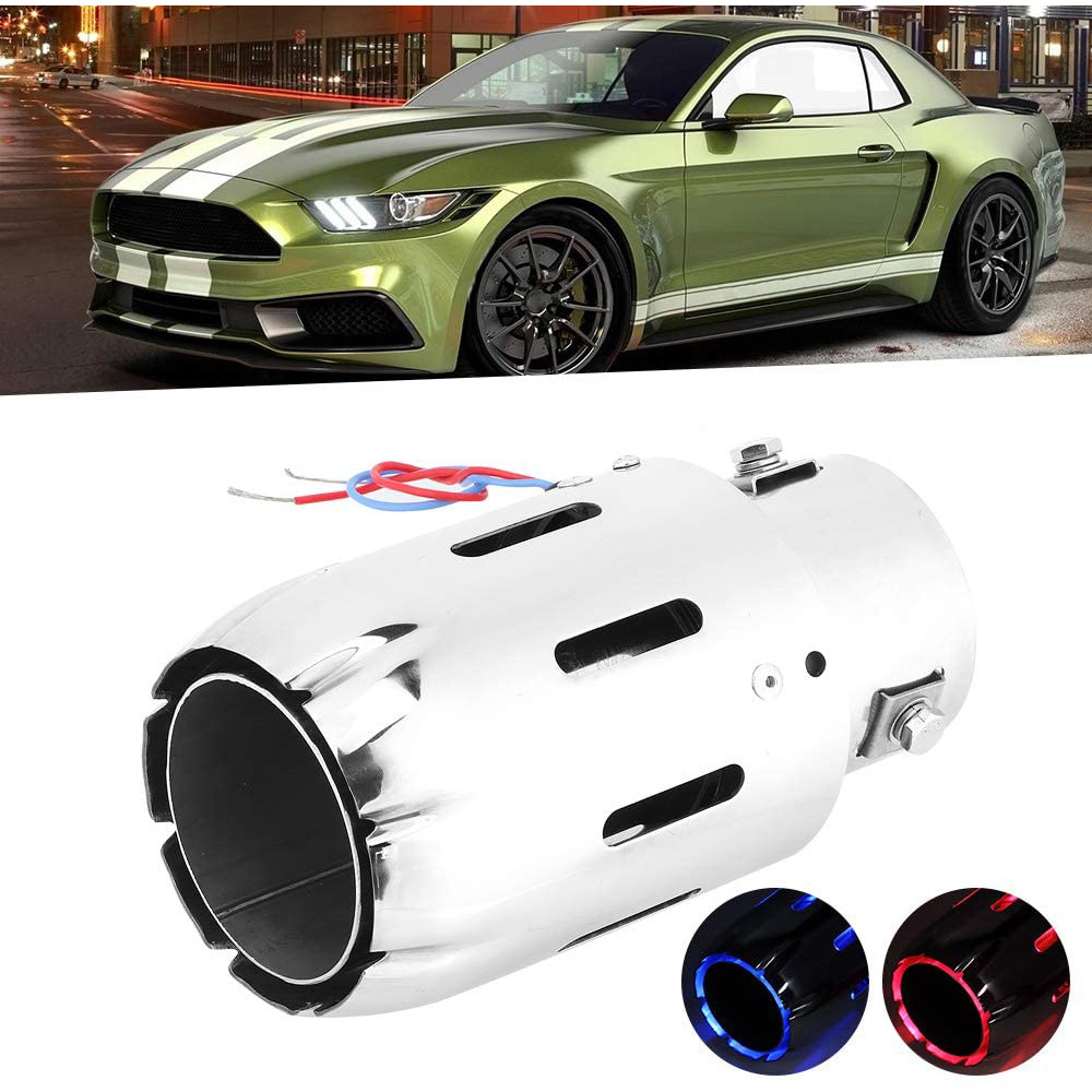 Stainless Steel Exhaust Tip LED Light Muffler Universal Red Blue