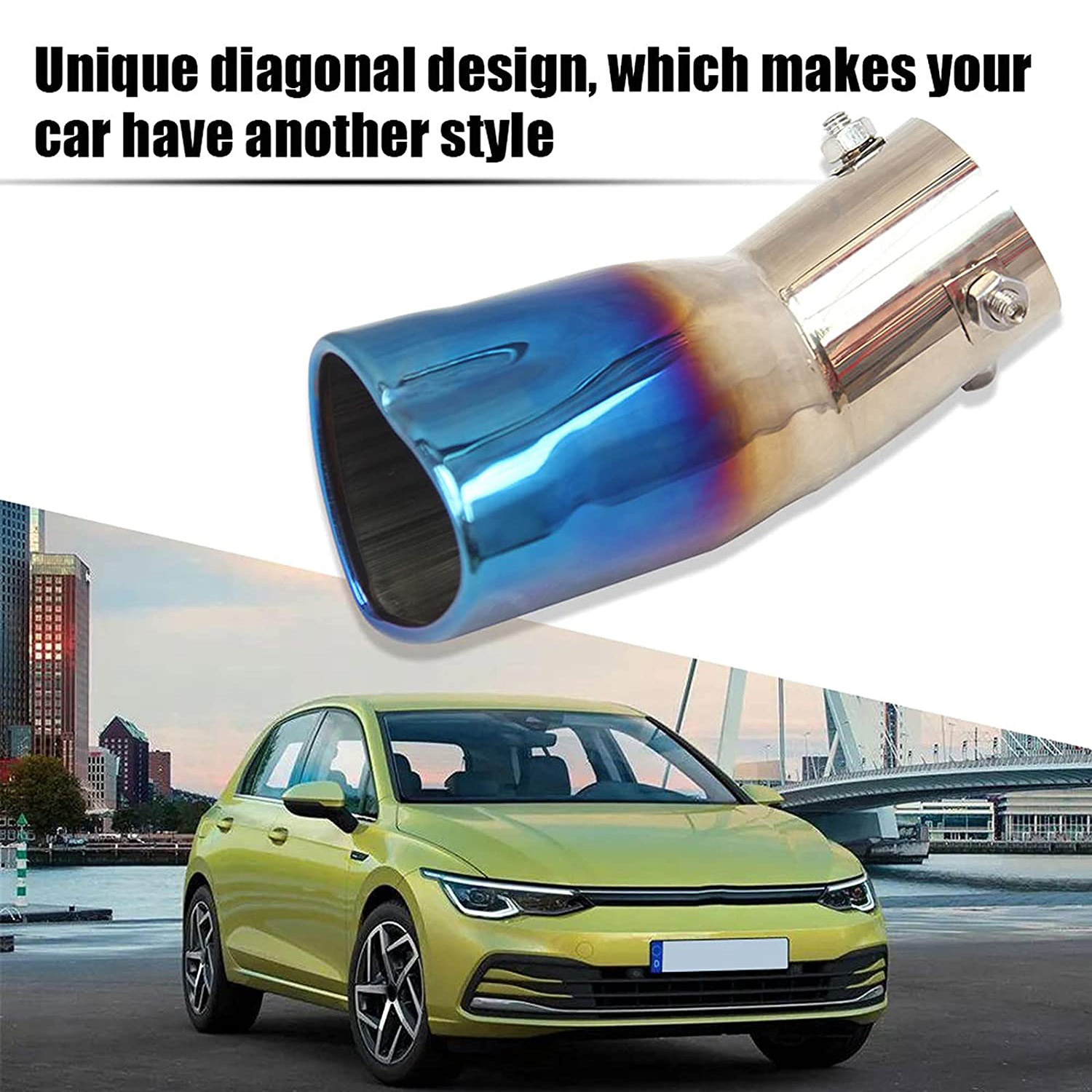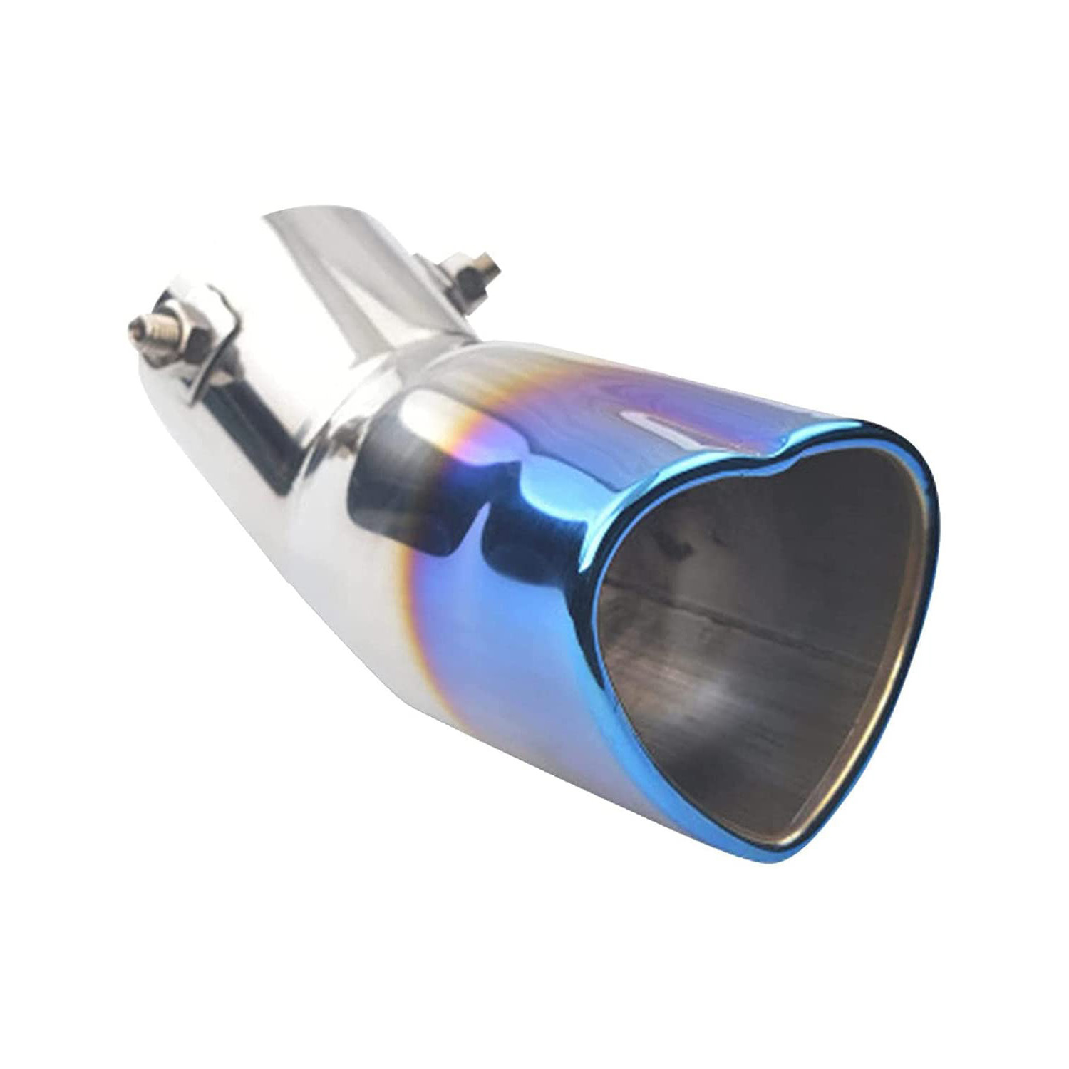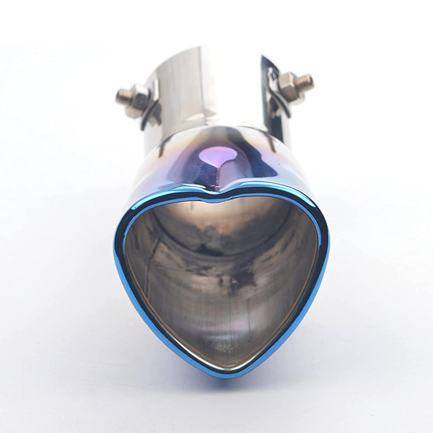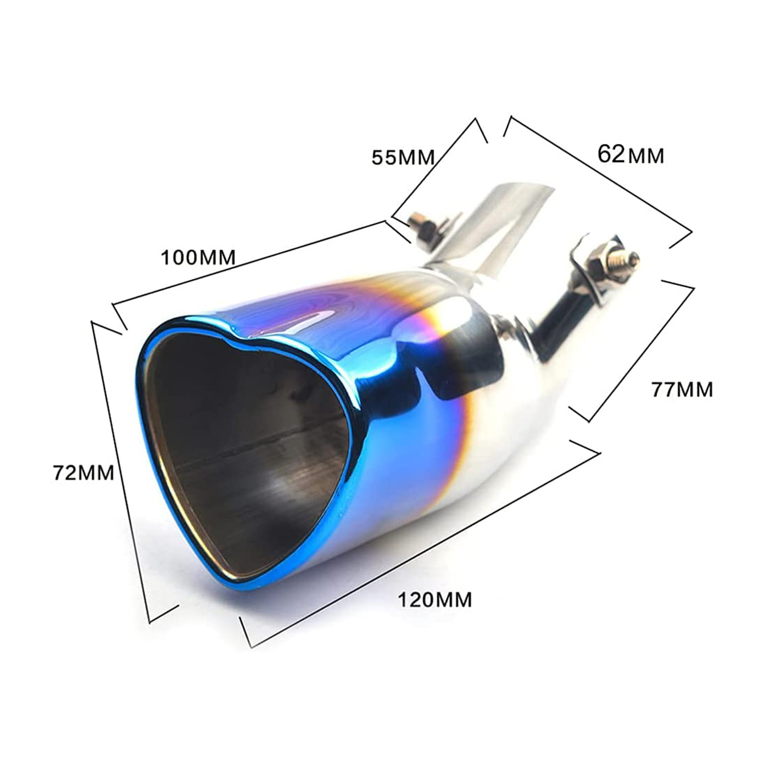 Stainless Steel Heart Shaped Exhaust Tip Tail Pipe Muffler (Bent/Straight, Silver/Blue) for Universal Car Modification