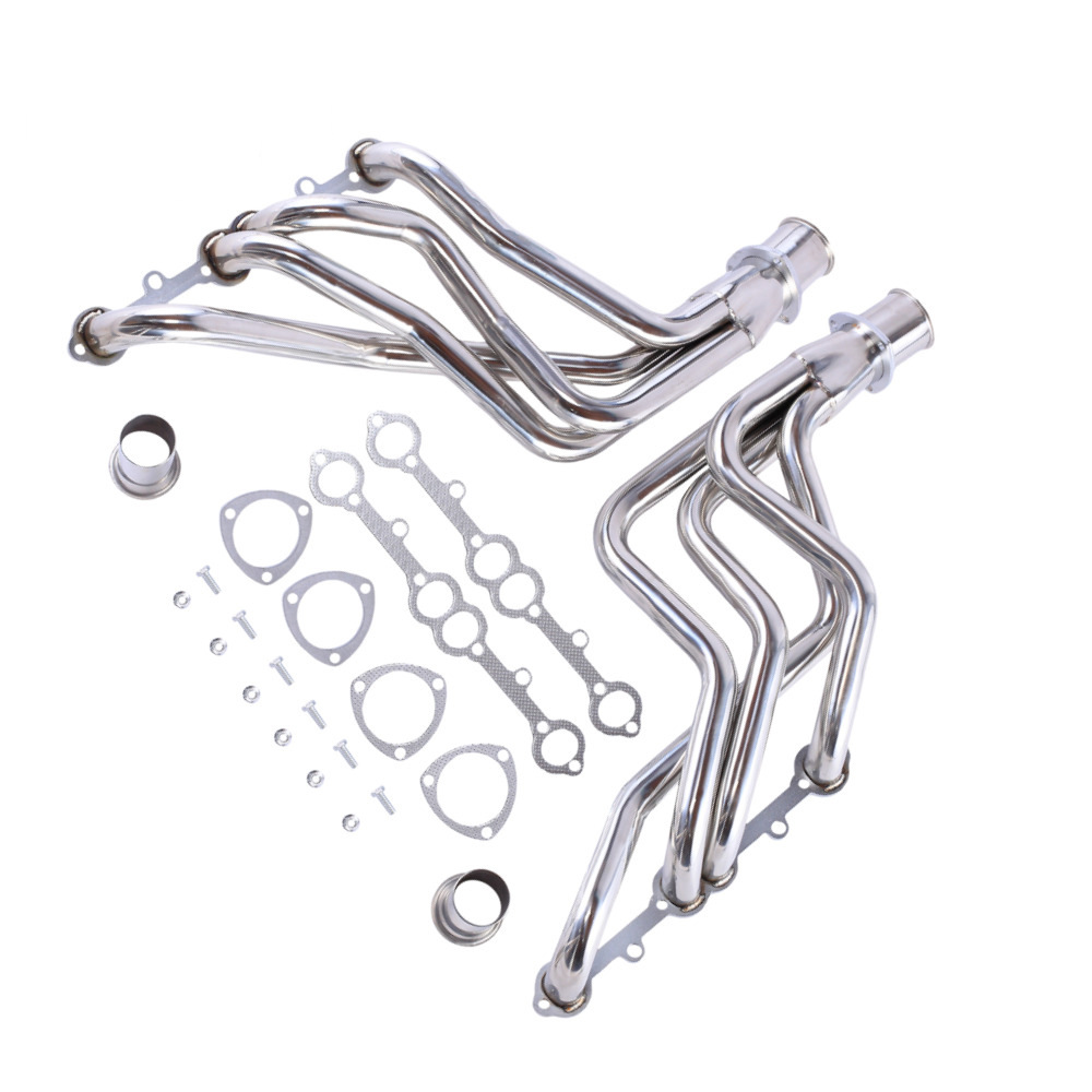• Package includes 1 x Long Tube Exhaust Header set, along with all necessary hardware, bolts, and gaskets for a complete installation. This essential upgrade is the perfect choice for enthusiasts seeking to significantly boost their classic Chevy/GMC’s exhaust efficiency, horsepower, and aggressive sound.
