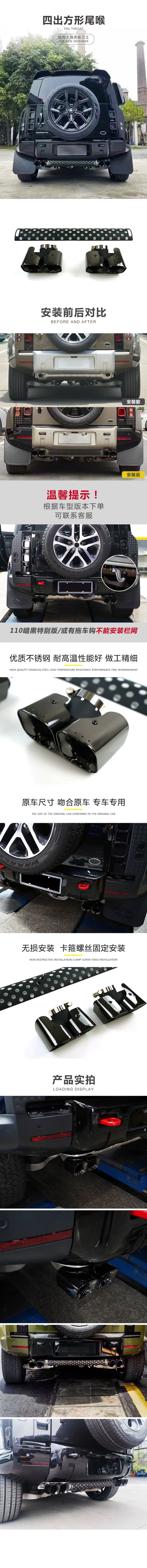 - Package Includes: Each set contains 2 high-quality stainless steel quad exhaust tail pipes, offering a complete solution to transform your Defender’s appearance.