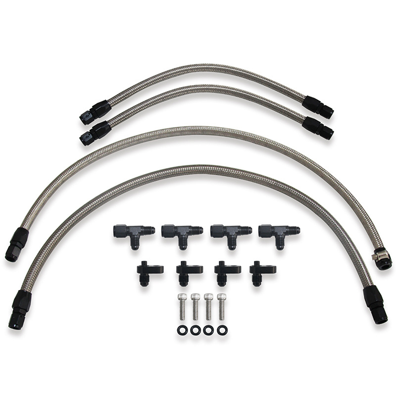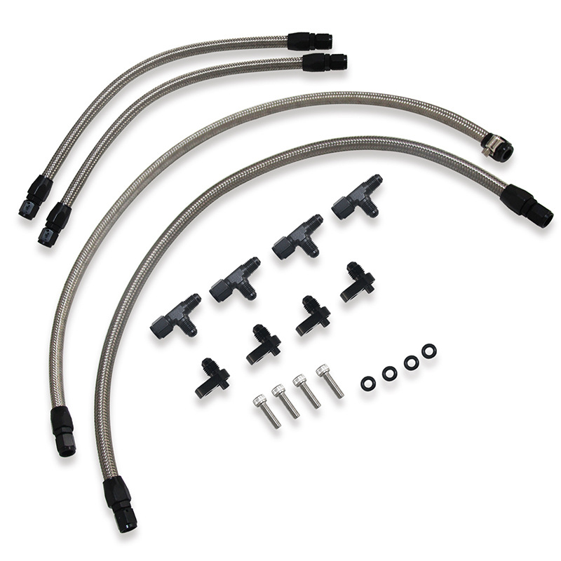 • The sleek design featuring black nylon braided hoses and black anodized fittings adds a clean, high-performance aesthetic to your engine bay, upgrading your vehicle’s under-hood appearance.