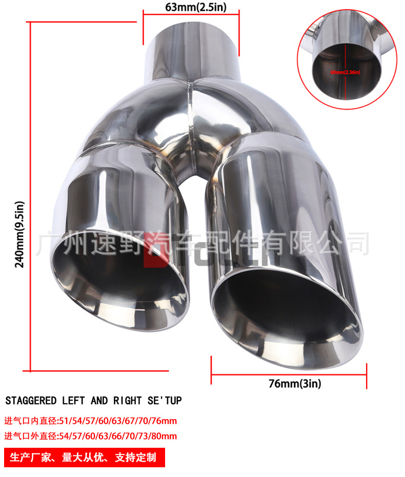 • Universal Fit for Enhanced Style & Performance: This U-shaped dual outlet muffler is designed for a universal fit, compatible with most vehicles with exhaust pipe diameters between 63mm and 76mm.
